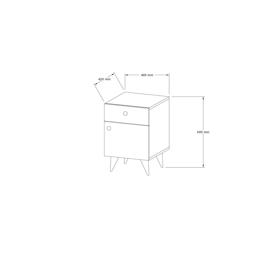 Made from 100% melamine coated particle board, this nightstand is built to last. The 18 mm thickness ensures sturdiness and stability, guaranteeing that it will withstand the test of time.