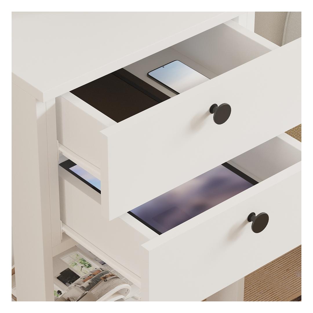 With its clean lines and minimalist design, our Scandinavian Nightstand exudes a sense of calm and sophistication. The sleek white color adds a touch of freshness and purity to your bedroom, creating a serene atmosphere that promotes relaxation and tranquility.