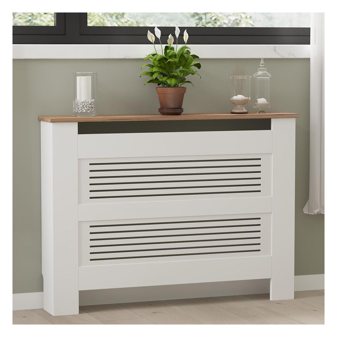 Enhance the look of your living room, bedroom, or hallway with our Radiator Cabinet. The Atlantic Pine and White color combination adds a modern touch to any decor, while the sleek design effortlessly blends in with your existing furniture. Create a cozy and inviting atmosphere in your home with this versatile piece.