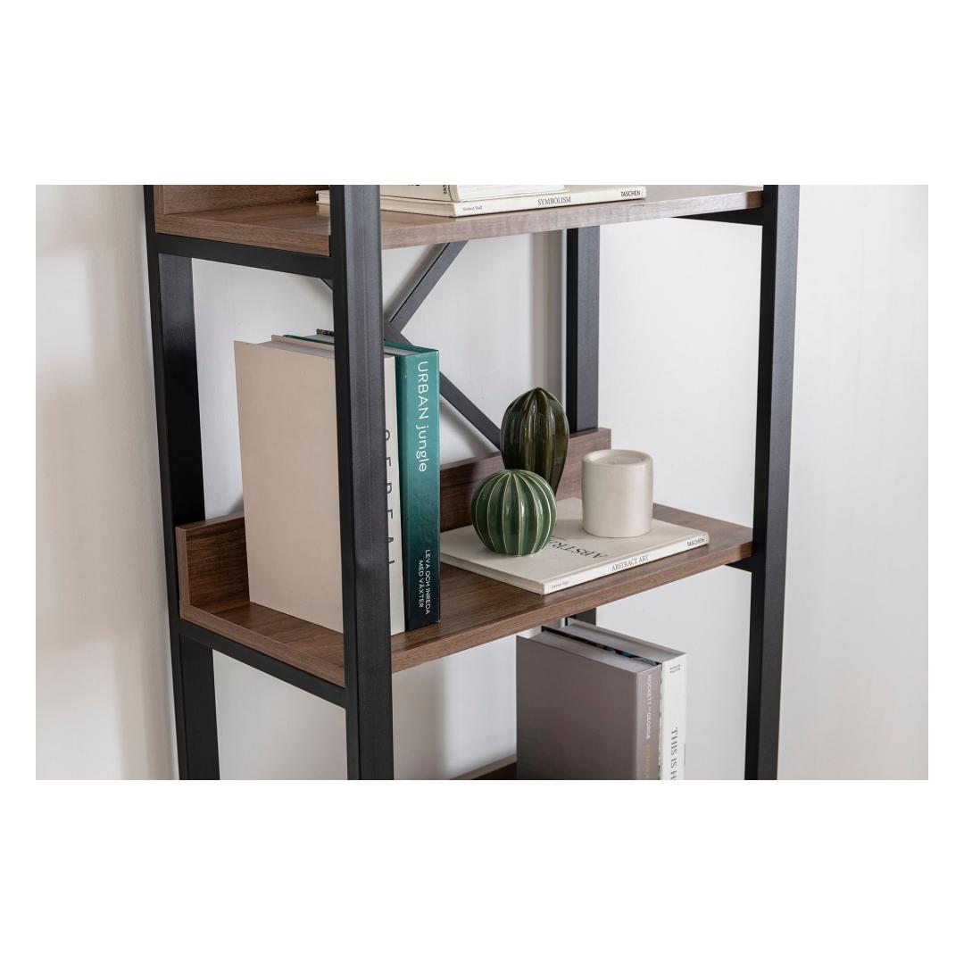 With its metal frame and rustic walnut finish, this bookshelf exudes a sense of warmth and character that will instantly transform your space. Whether you place it in your living room, bedroom, or home office, it will become the focal point of the room and showcase your unique style.