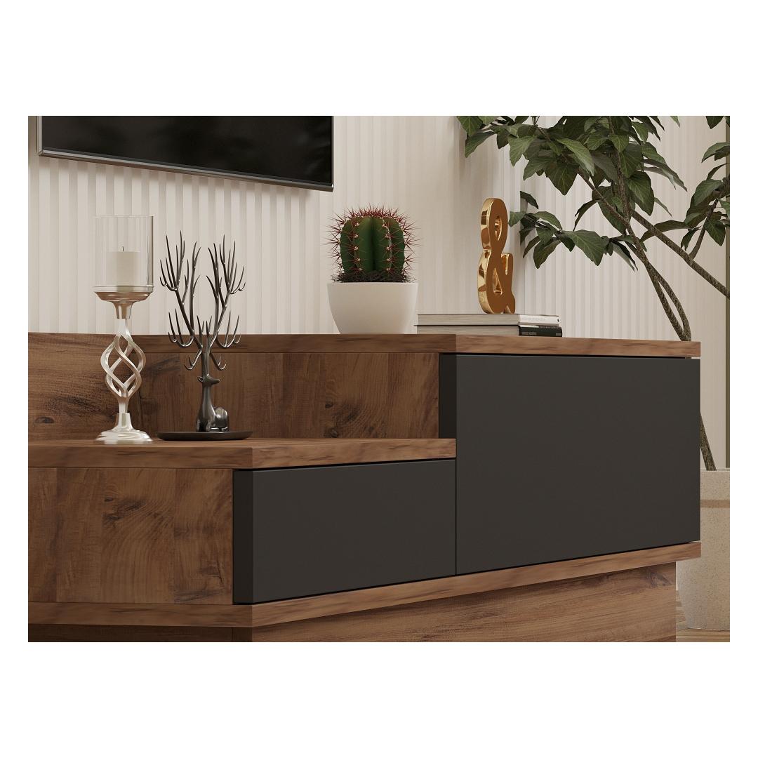 Inspired by the minimalist and chic Scandinavian design, our TV Stand combines simplicity with sophistication. The clean lines and neutral colors of Atlantic Pine and Anthracite create a timeless piece that effortlessly complements any interior style. Whether your home is contemporary or traditional, this TV Stand will add a touch of elegance to your living space.