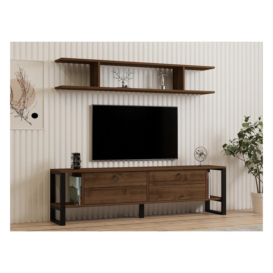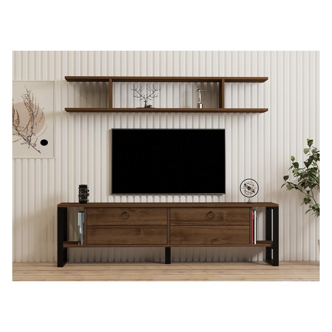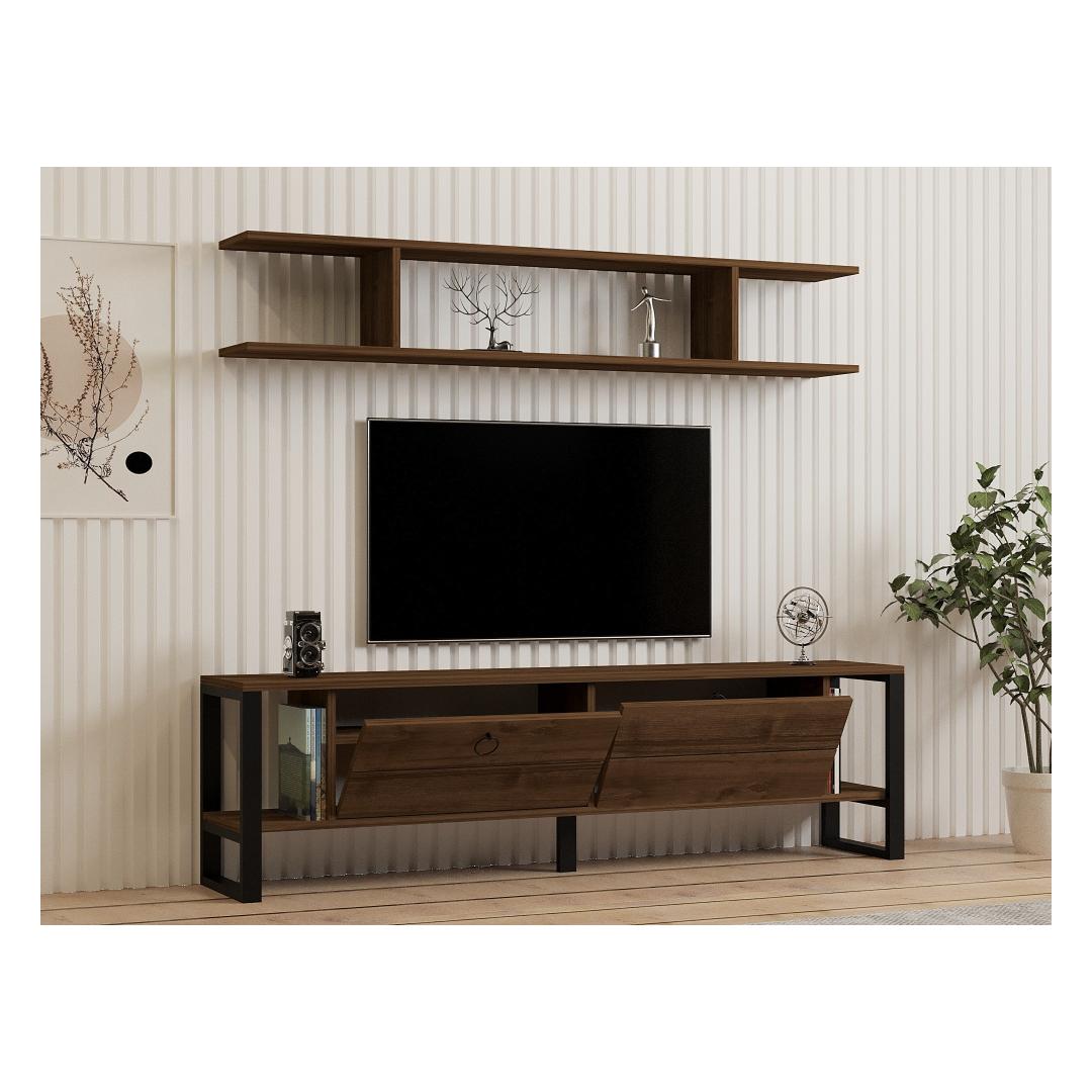Featuring metal legs, this TV unit exudes an industrial charm that effortlessly complements any interior style. The walnut color adds a rustic touch, creating a warm and inviting atmosphere in your living space.