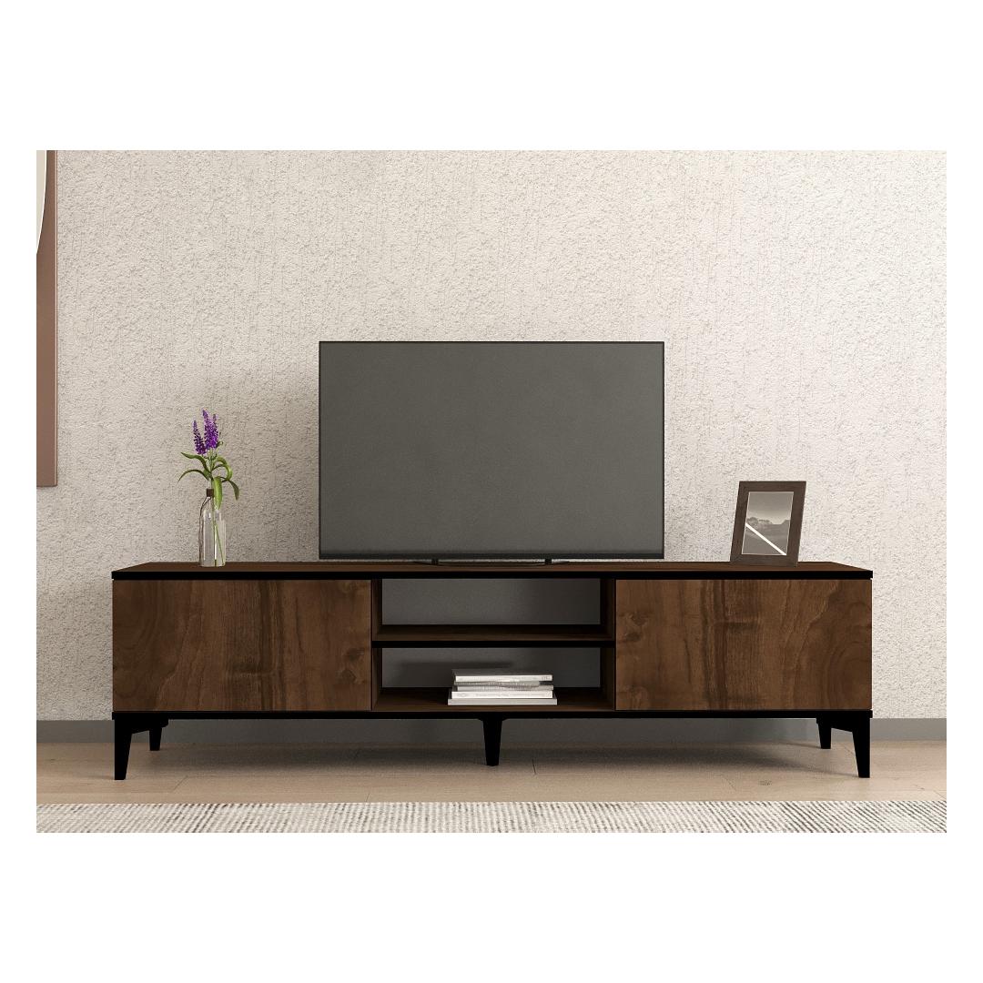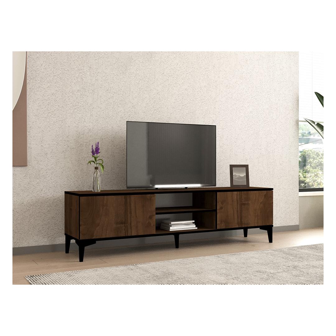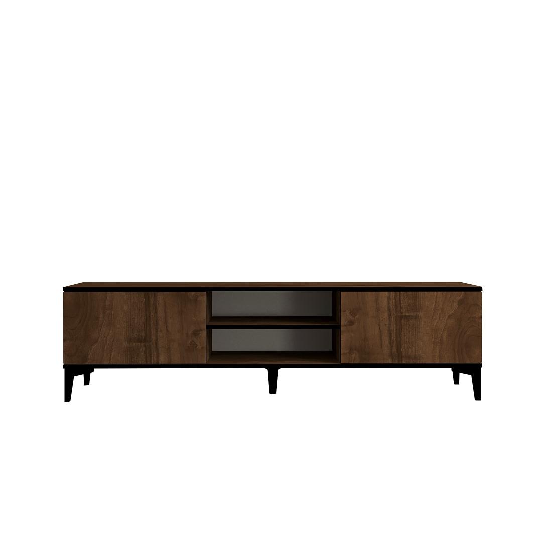 With its sleek and modern design, our TV Stand effortlessly blends into any interior decor, making it a perfect addition to your home. The combination of walnut and black colors adds a touch of sophistication and elegance, making it a focal point in your living room.