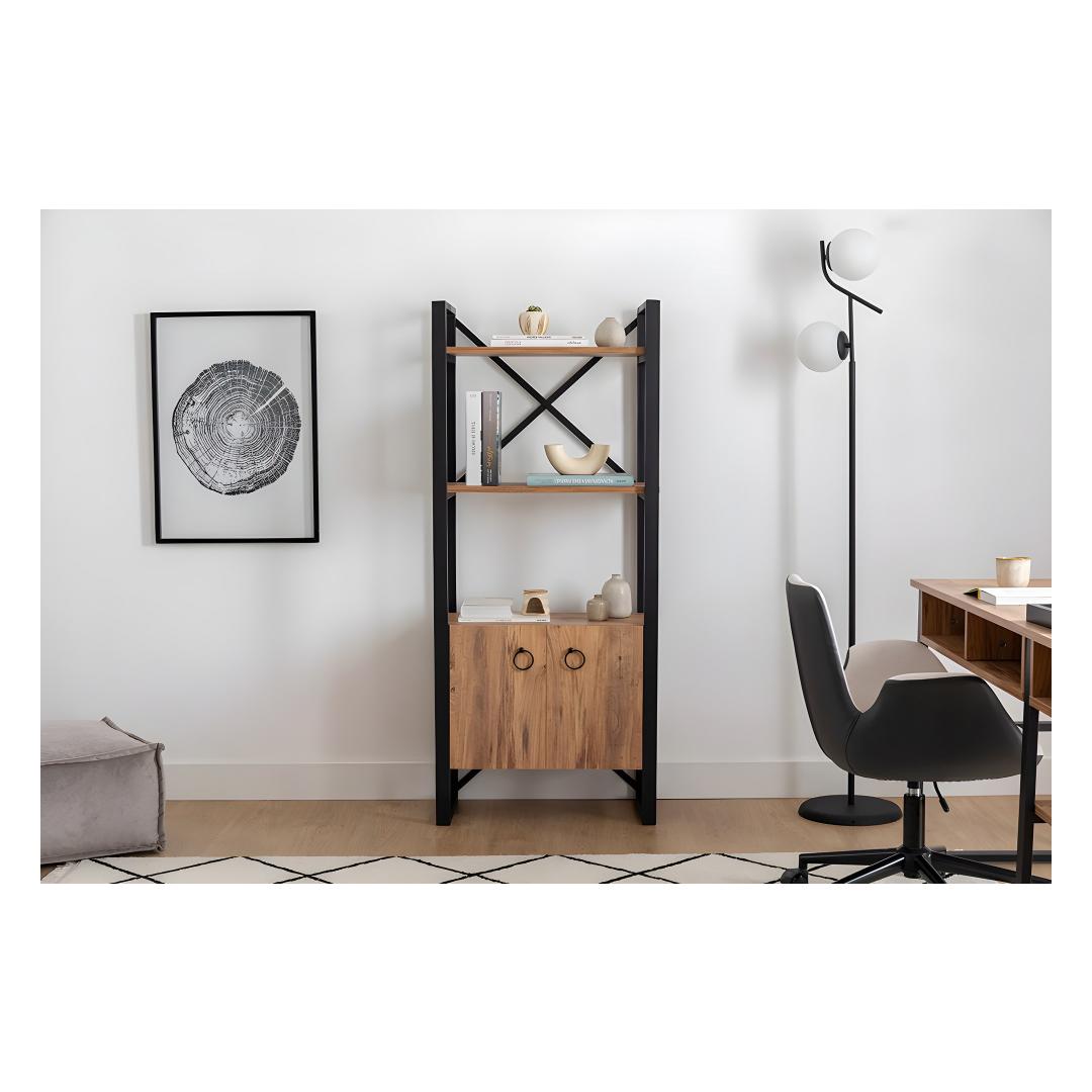The bookshelf is designed in a stunning combination of Atlantic Pine and Black colors. This versatile color scheme effortlessly complements any interior style, from modern to traditional. Add a touch of sophistication to your living room, bedroom, or home office with this timeless piece.