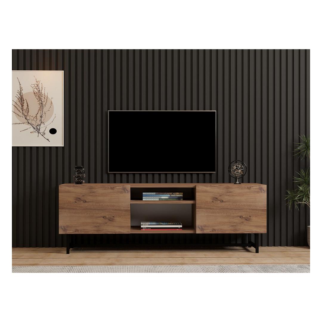 Crafted from 100% melamine coated particle board, this TV stand is built to last. The 18mm thickness ensures durability and stability, while the metal legs add a touch of industrial chic. The Atlantic Pine color adds warmth and richness to any decor.