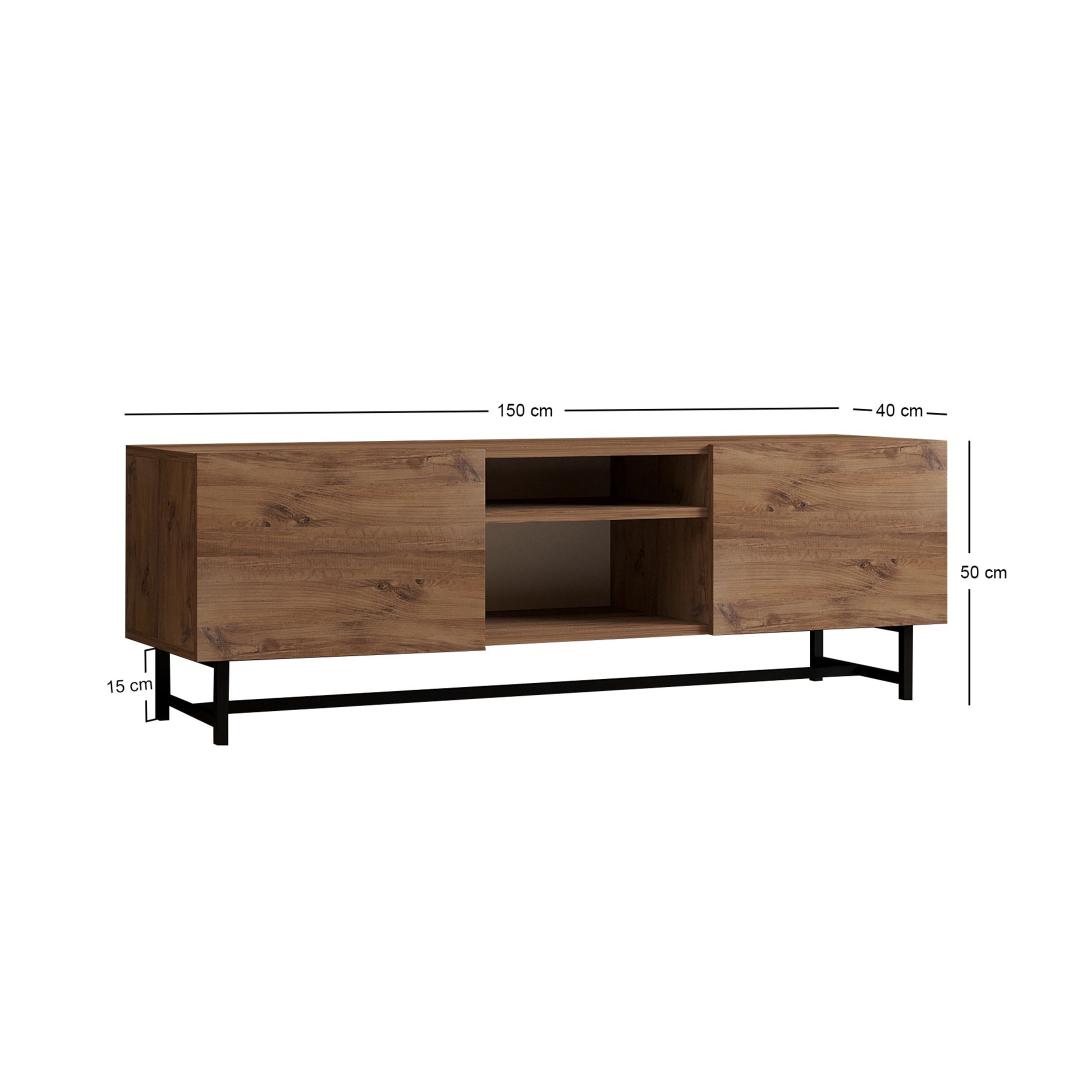 With a width of 150cm, height of 50cm, and depth of 40cm, this TV stand offers plenty of storage space for your media devices, DVDs, and more. The metal legs, standing at 15cm, provide additional support and a modern touch.