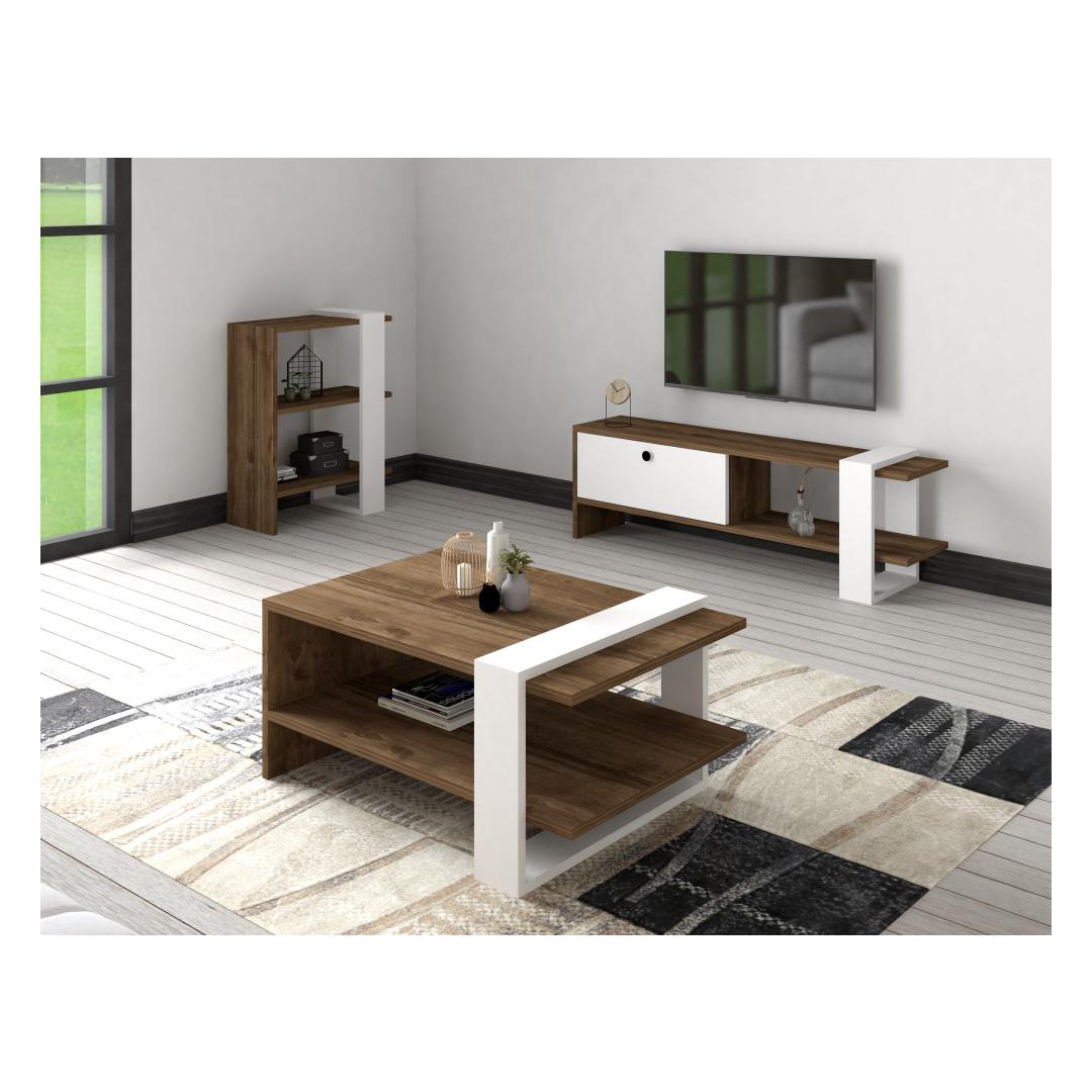 With its sleek design and modern aesthetics, this furniture set will instantly elevate the look of your living room. The combination of walnut and white colors adds a touch of sophistication, creating a harmonious blend that will complement any interior style.
