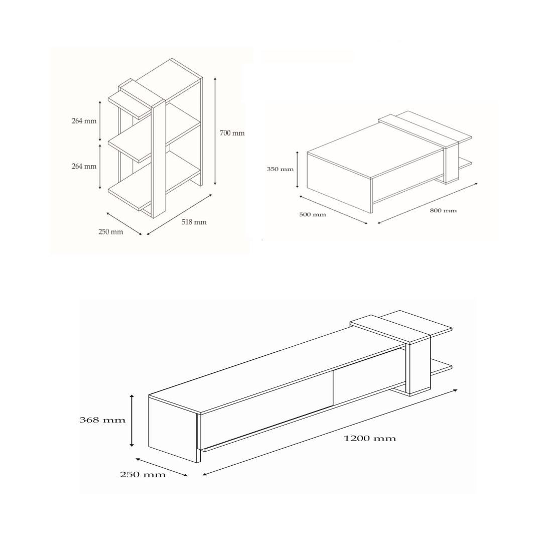 • TV Stand: Width: 120 cm, Height: 36.8 cm, Depth: 25 cm