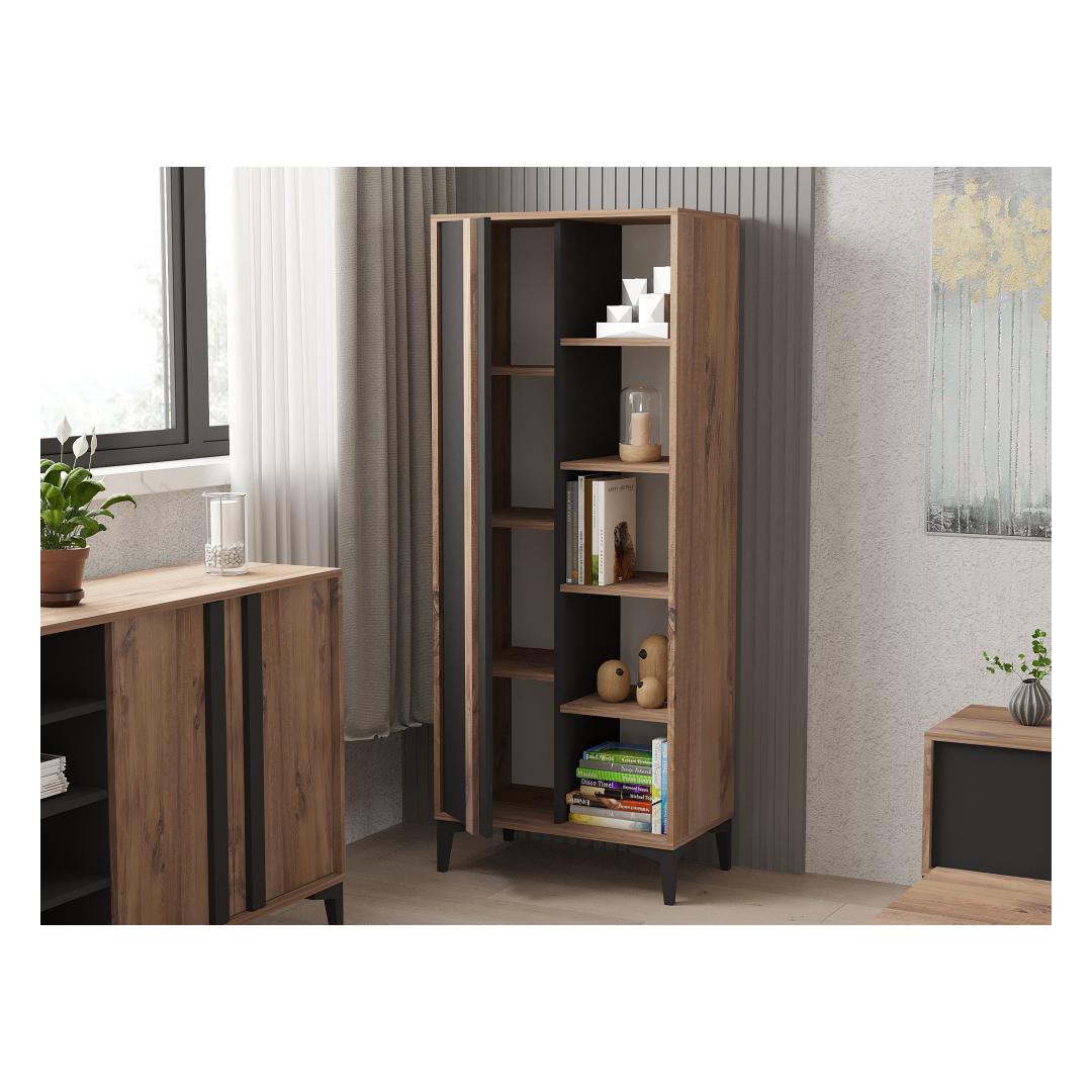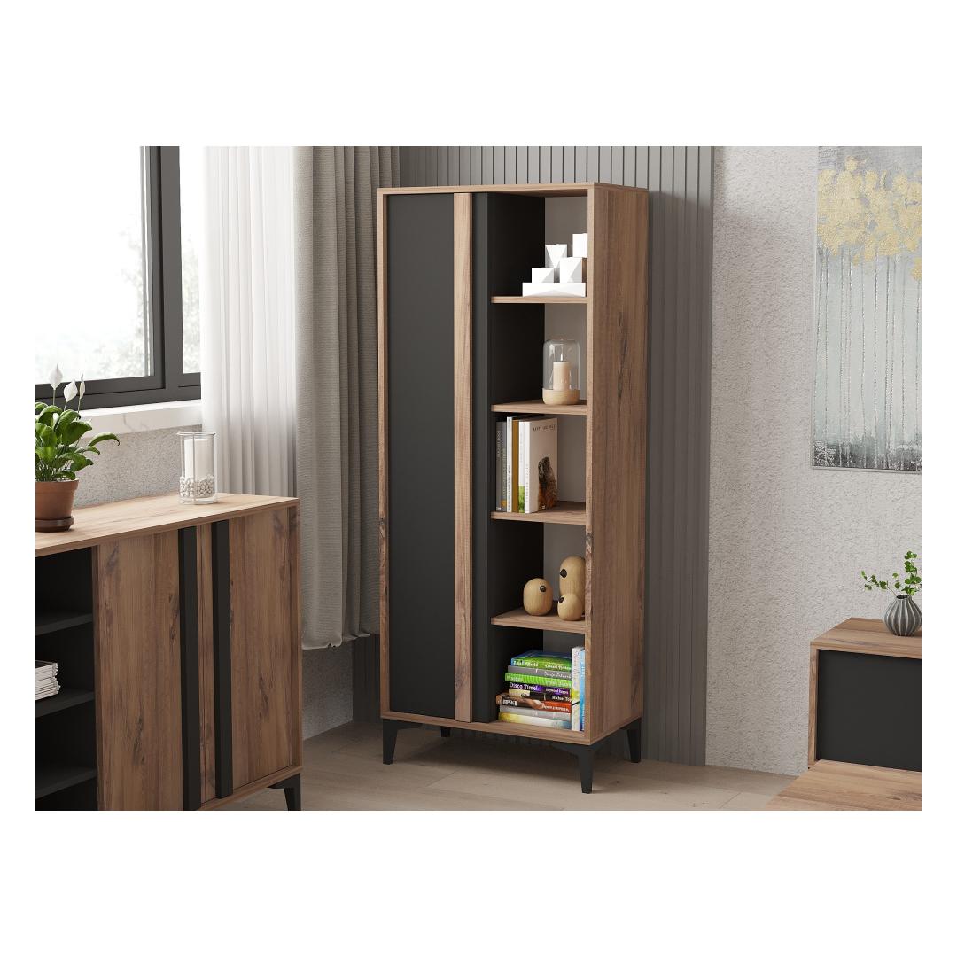 Crafted with utmost precision, this bookshelf boasts a sleek and modern design that effortlessly complements any interior style. The combination of Atlantic and Anthracite colors adds a touch of sophistication to your space, making it a focal point of admiration for your guests.