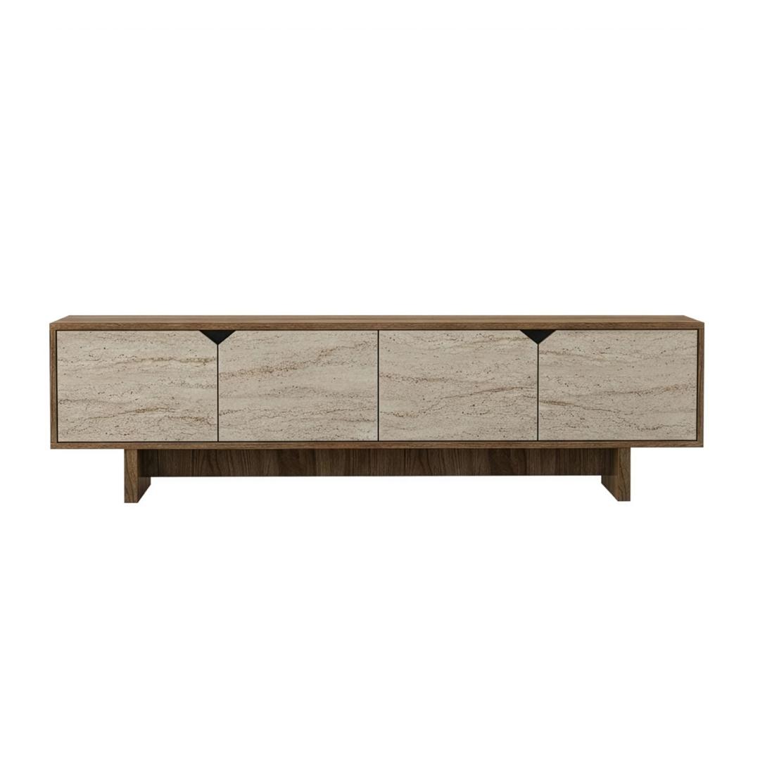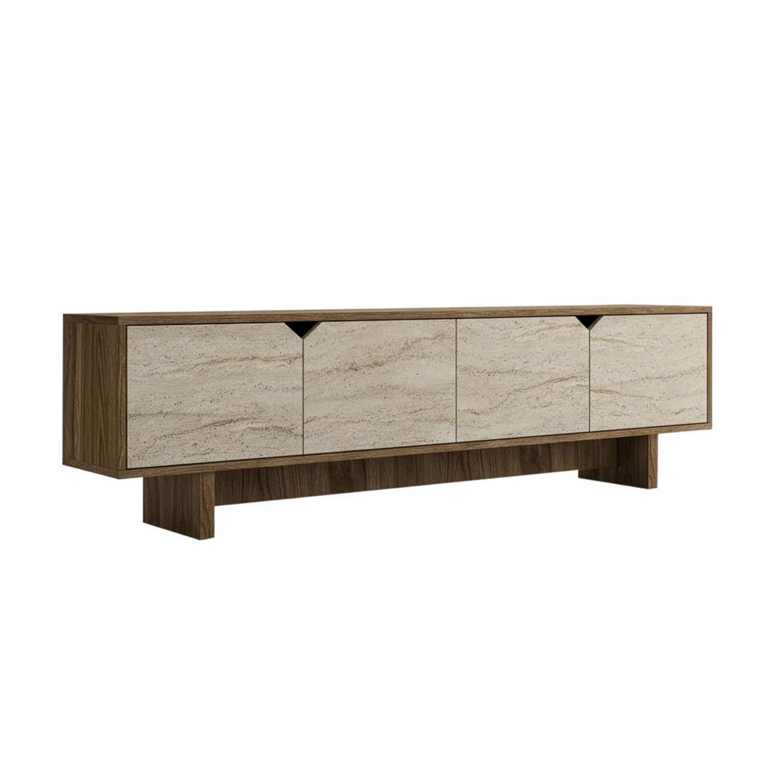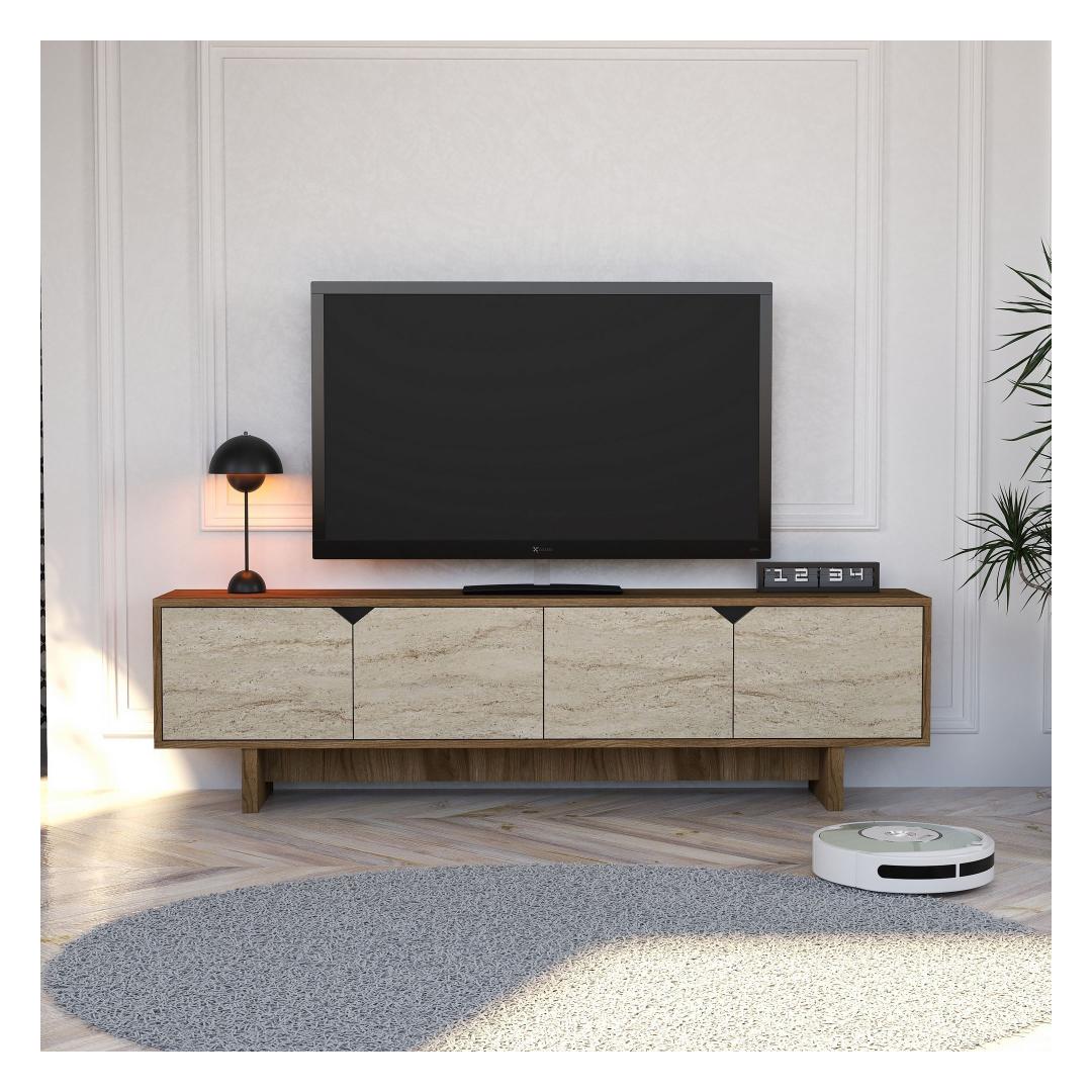 The walnut and travertine colors of this TV stand add a touch of elegance to any room, while the option to fix it to the wall ensures stability and safety. Whether you're hosting a movie night with friends or enjoying a quiet evening at home, this TV stand will be the focal point of your living room.