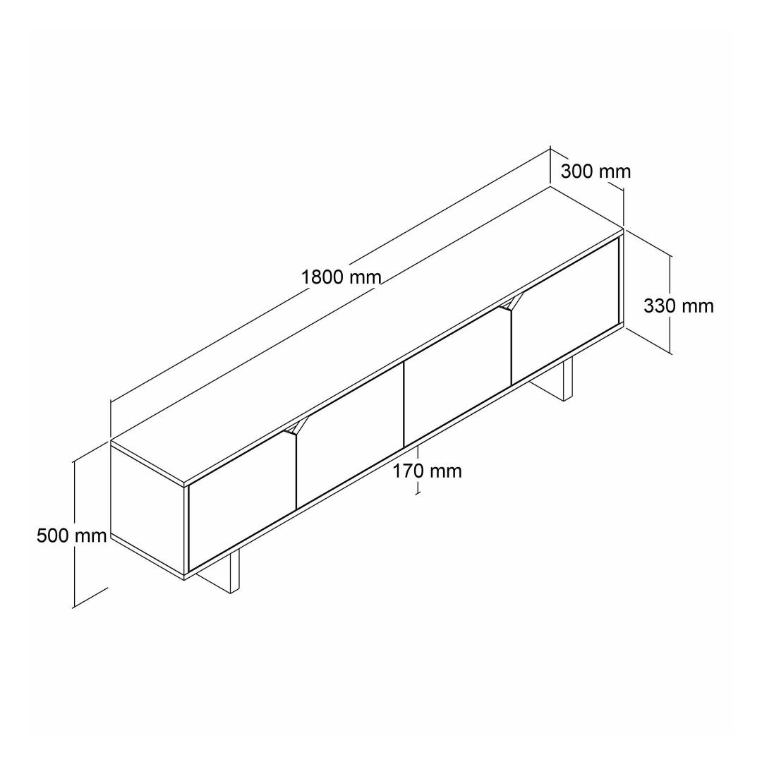 With a width of 180 cm, height of 50 cm, and depth of 30 cm, this TV stand offers ample space for all your entertainment essentials. The numerous shelves provide storage for your media devices, DVDs, and more, keeping everything organized and within reach.
