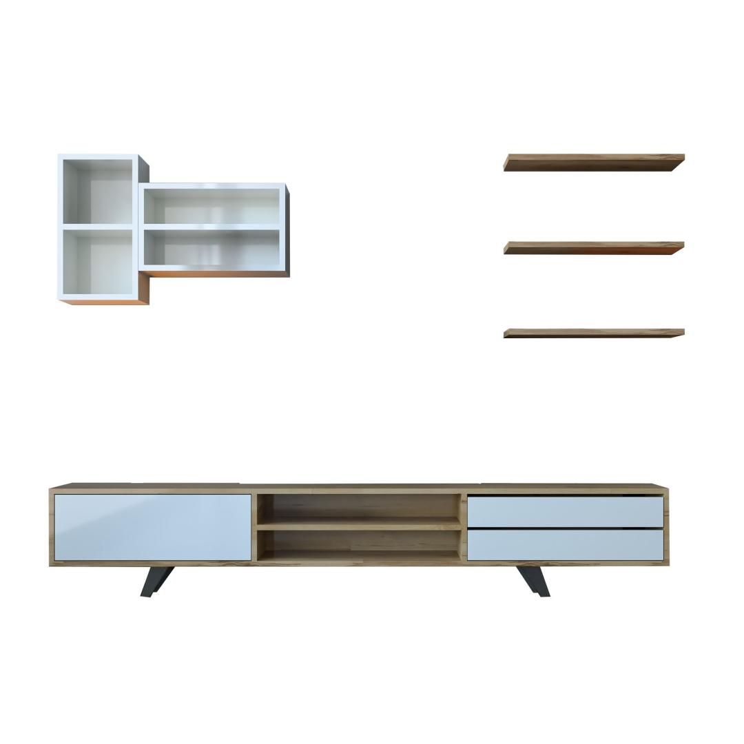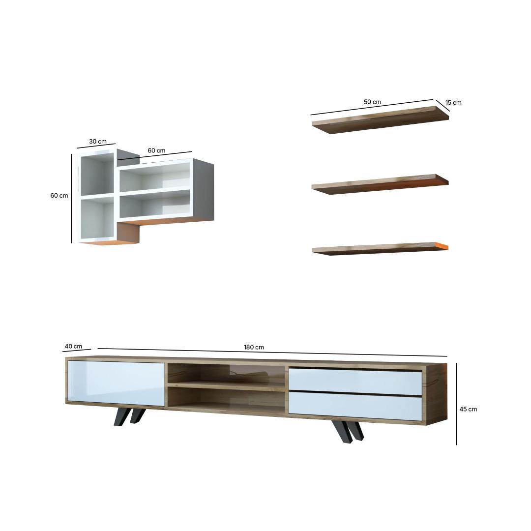 With a width of 180 cm, height of 45 cm, and depth of 40 cm, this TV unit provides ample storage space for all your entertainment essentials. The combination of white and oak colors adds a touch of sophistication to your decor, creating a warm and inviting atmosphere in your home.