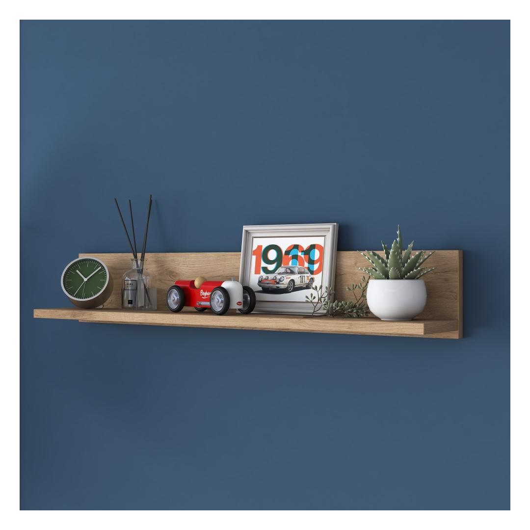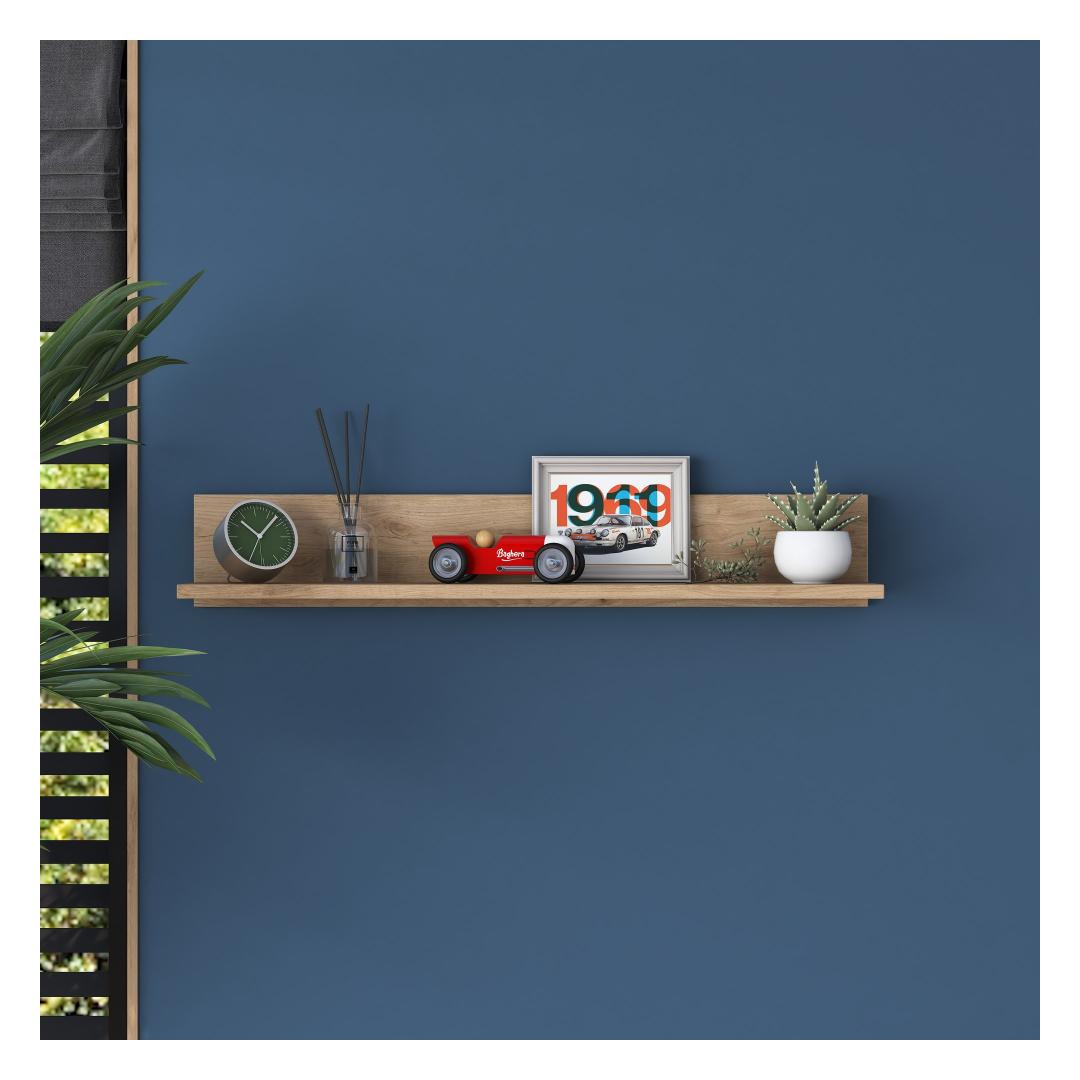 Crafted from 100% melamine coated particle board, this wall shelf is built to withstand the test of time. Its 18 mm thickness ensures exceptional strength and stability, guaranteeing that your precious belongings will be securely displayed for years to come.