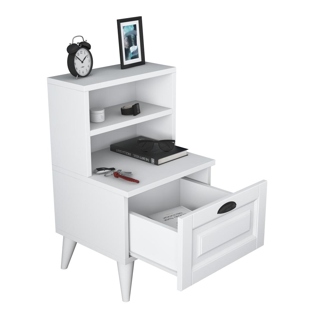 Say goodbye to cluttered bedside tables and hello to organized bliss. Our nightstand features numerous shelves and a spacious drawer, providing ample storage for all your essentials. From books and magazines to charging cables and personal belongings, everything will have its designated place.