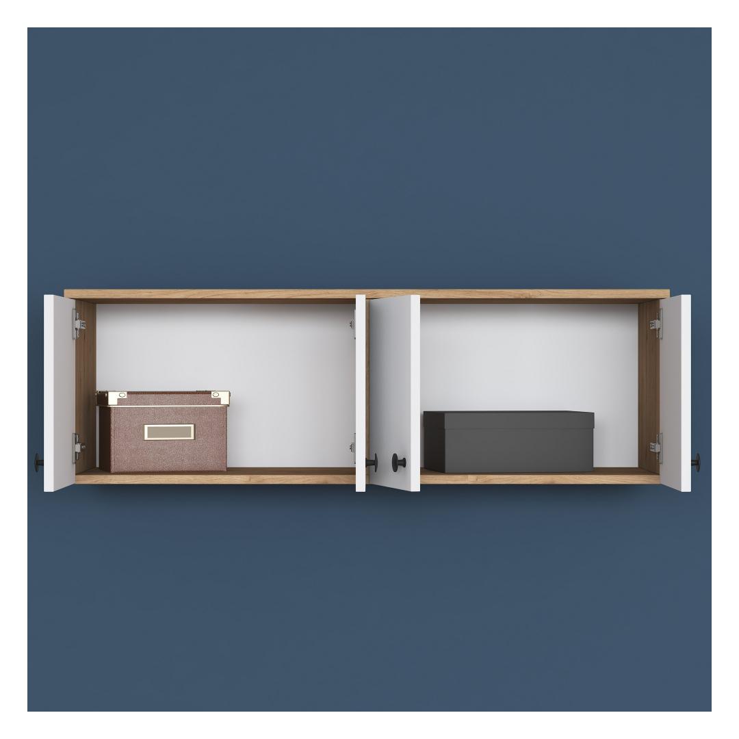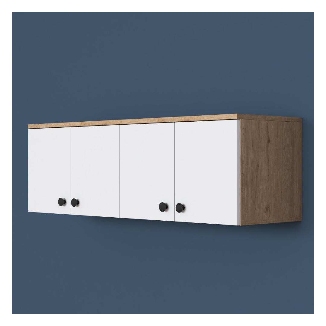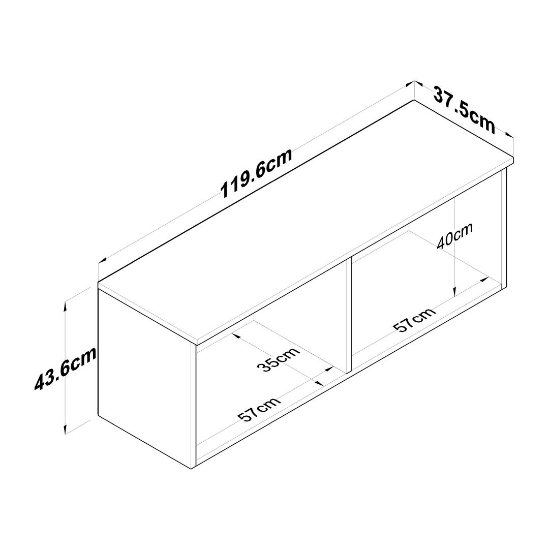 This wall cabinet can be easily fixed to the wall, providing a secure and stable storage solution. The compact size of 119.6 cm in width, 43.6 cm in height, and 37.5 cm in depth makes it ideal for smaller spaces while still offering plenty of storage options.