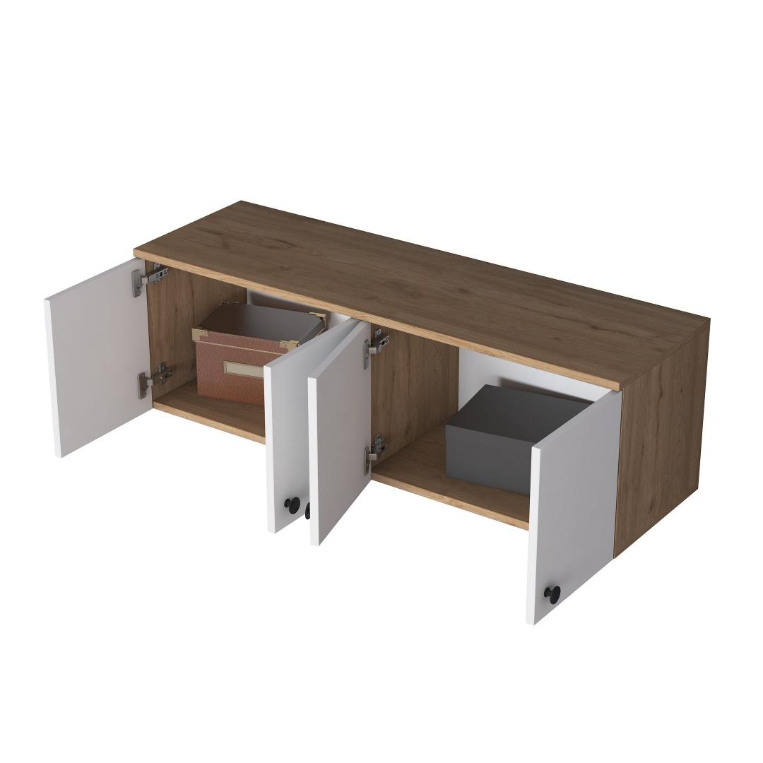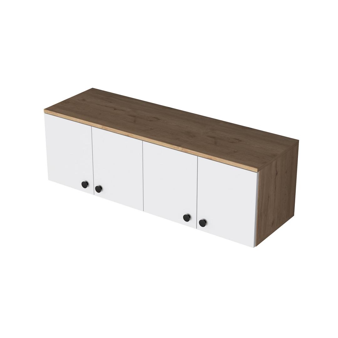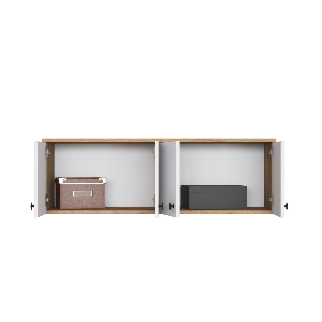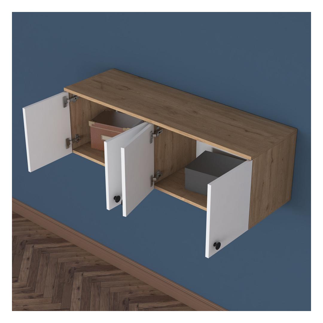 This wall cabinet can be easily fixed to the wall, providing a secure and stable storage solution. The compact size of 119.6 cm in width, 43.6 cm in height, and 37.5 cm in depth makes it ideal for smaller spaces while still offering plenty of storage options.