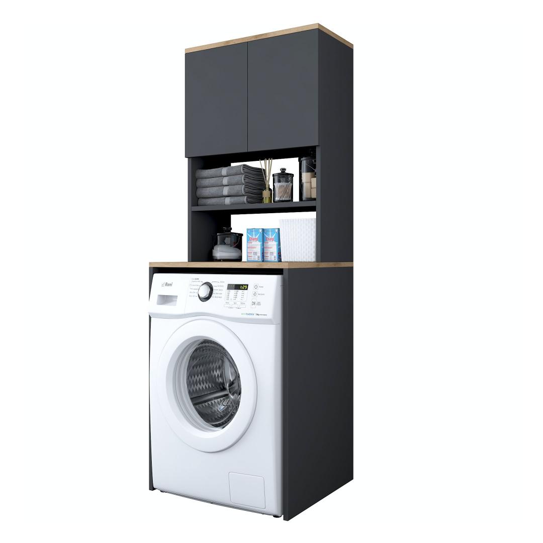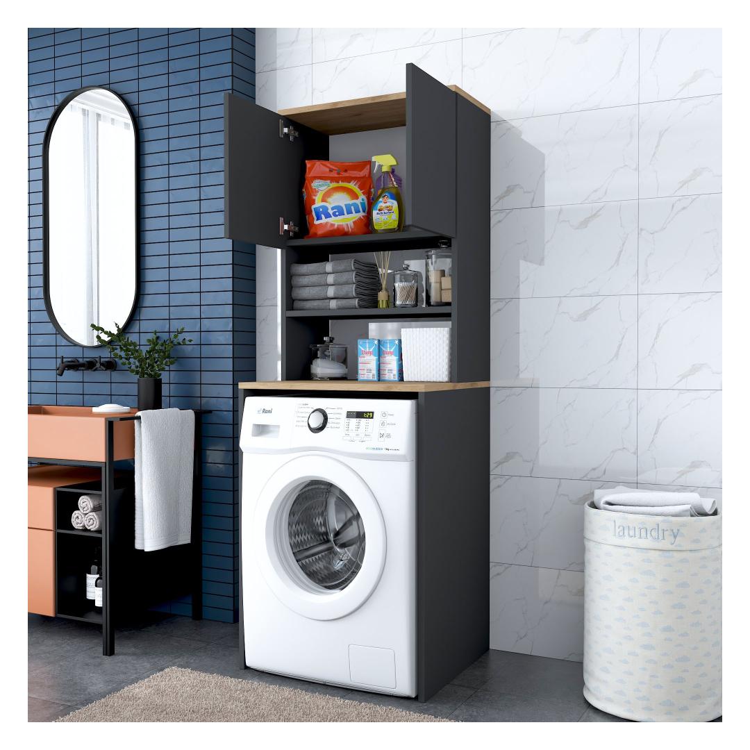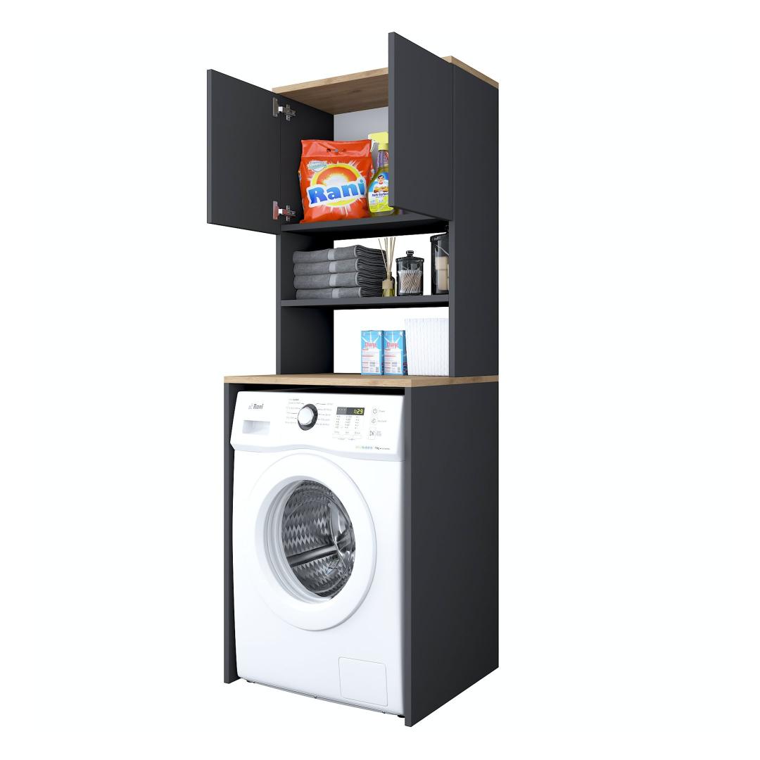 Featuring a sleek and modern design, our Washing Machine Cabinet effortlessly blends into any decor style. The combination of Walnut and Anthracite colors adds a touch of sophistication, making it the perfect statement piece for your laundry room.