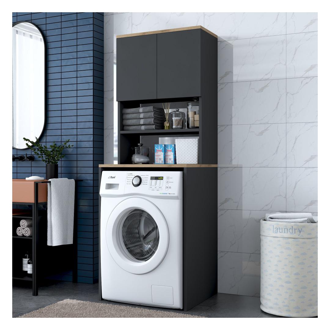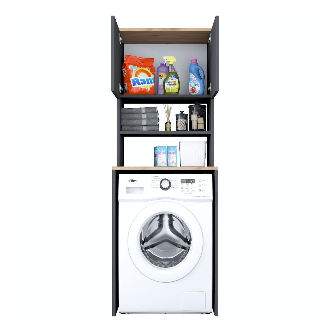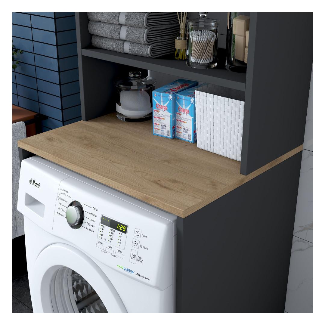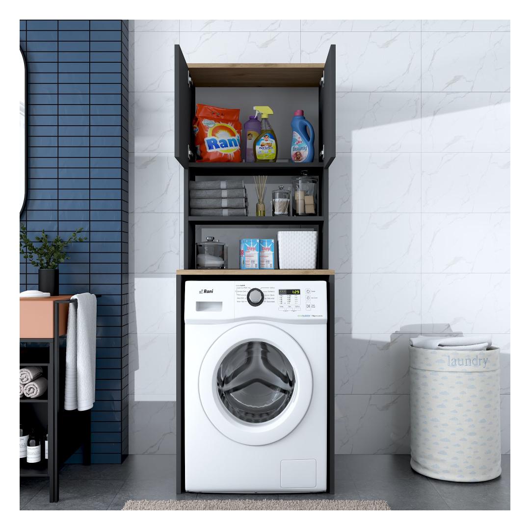 Featuring a sleek and modern design, our Washing Machine Cabinet effortlessly blends into any decor style. The combination of Walnut and Anthracite colors adds a touch of sophistication, making it the perfect statement piece for your laundry room.