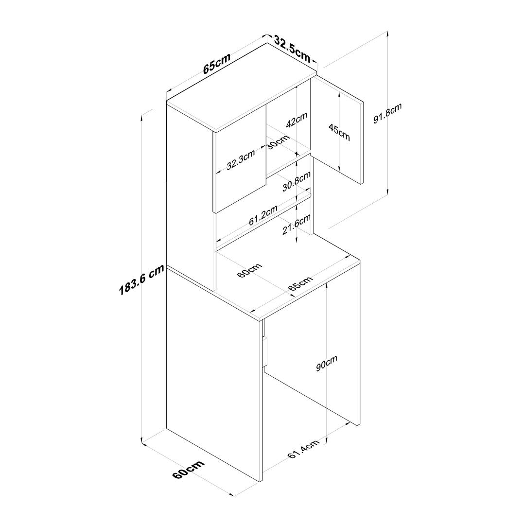 Crafted from 100% Melamine Coated Particle Board, our Washing Machine Cabinet is built to withstand the test of time. The 18mm thickness ensures sturdiness and durability, ensuring that your investment will last for years to come.