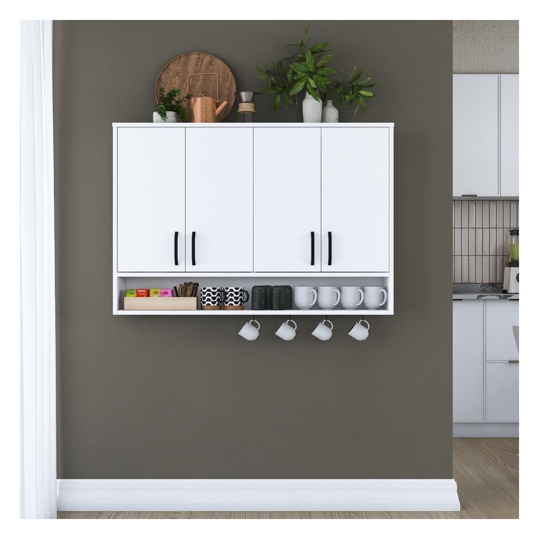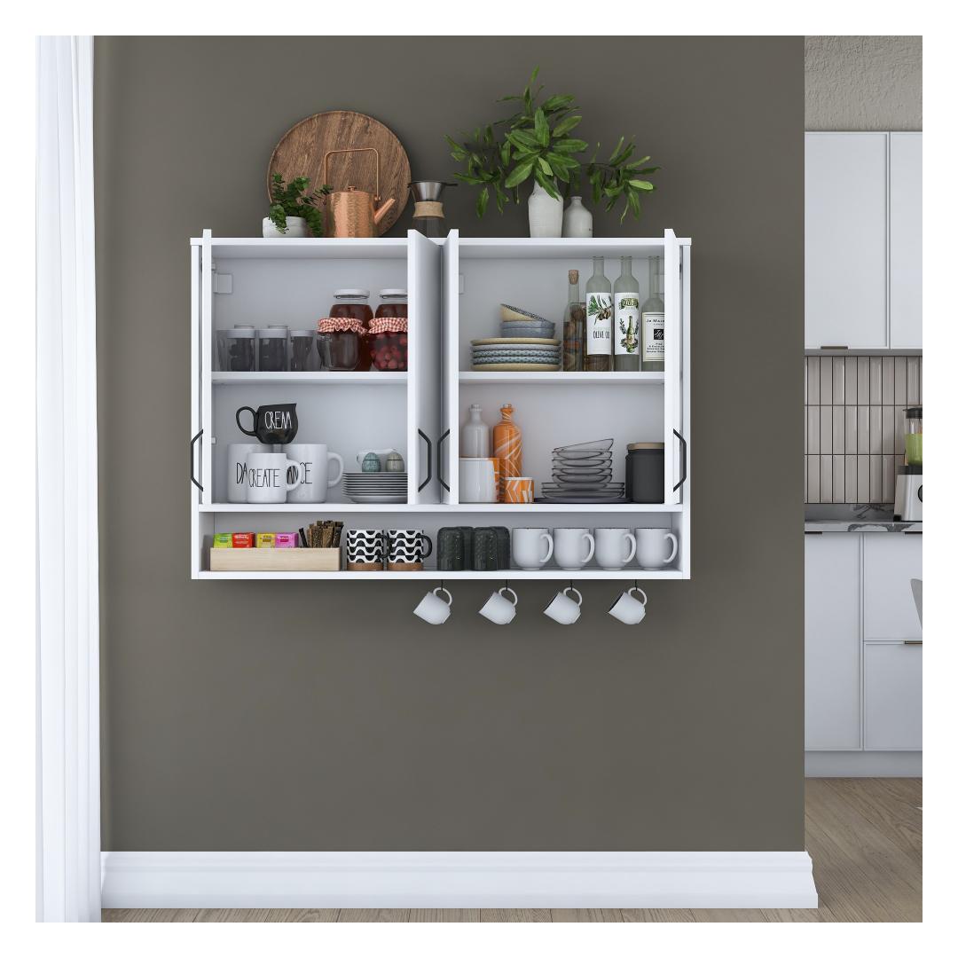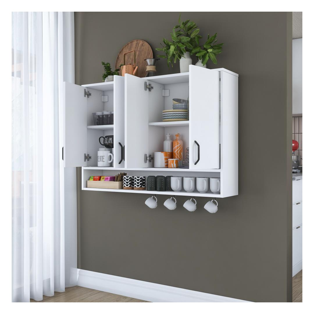 The sleek white color of this cabinet adds a touch of sophistication to any room. Whether you place it in the living room, kitchen, or bedroom, it will instantly become the focal point of the space. The option to fix it to the wall adds a touch of elegance and ensures stability.