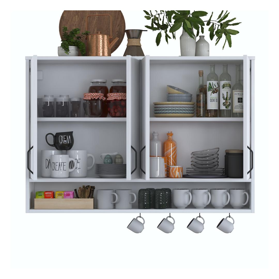 With a width of 120 cm, height of 61.8 cm, and depth of 27.5 cm, this cabinet offers ample storage space for all your essentials. The cup hangers provide a convenient spot for your mugs, while the numerous shelves allow you to display your favorite decor pieces. Additional storage ensures that everything has its place, keeping your space clutter-free.