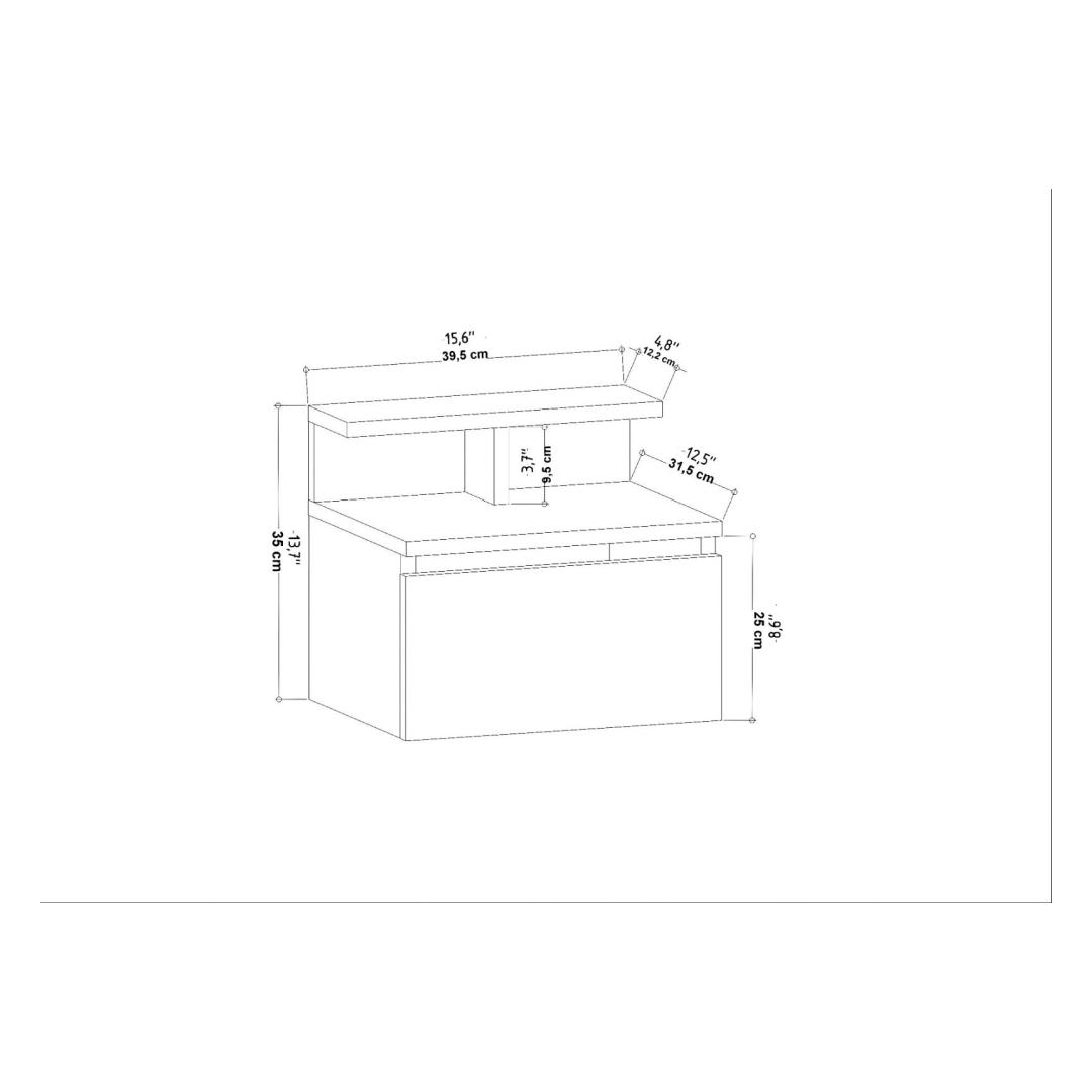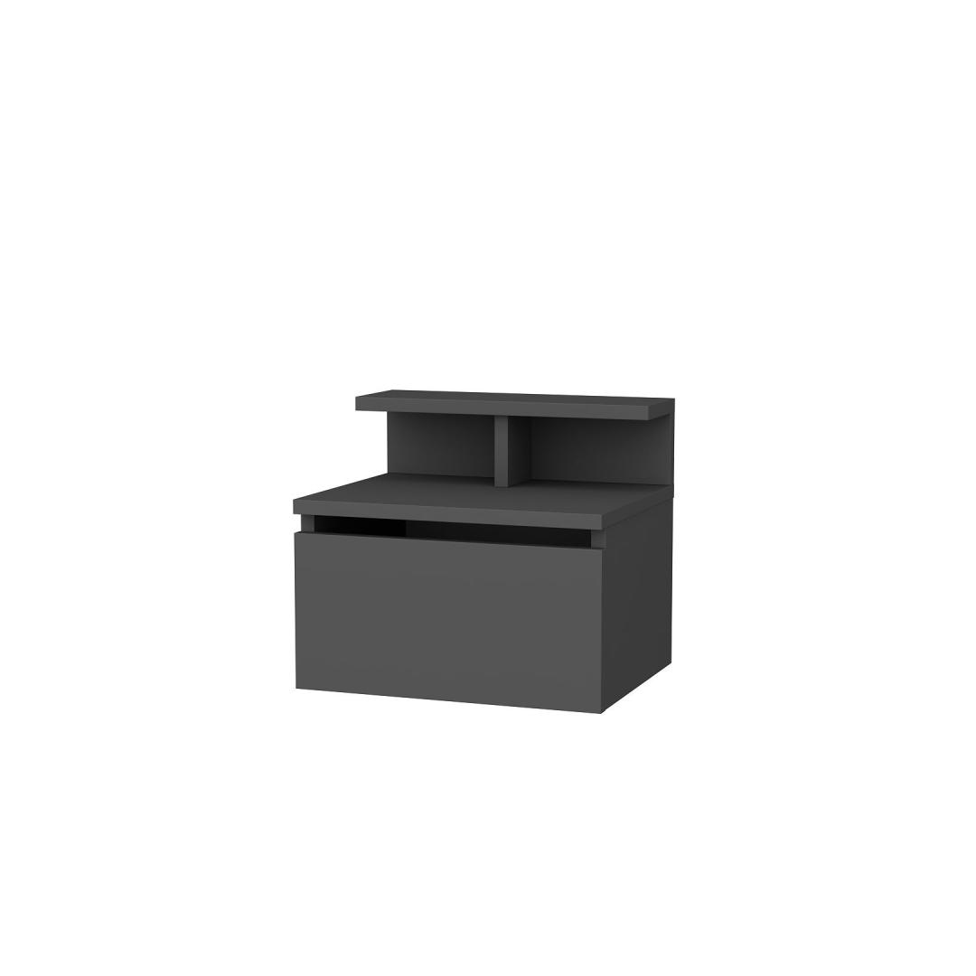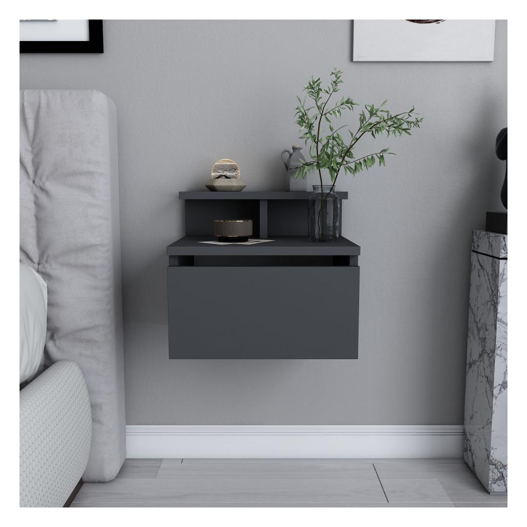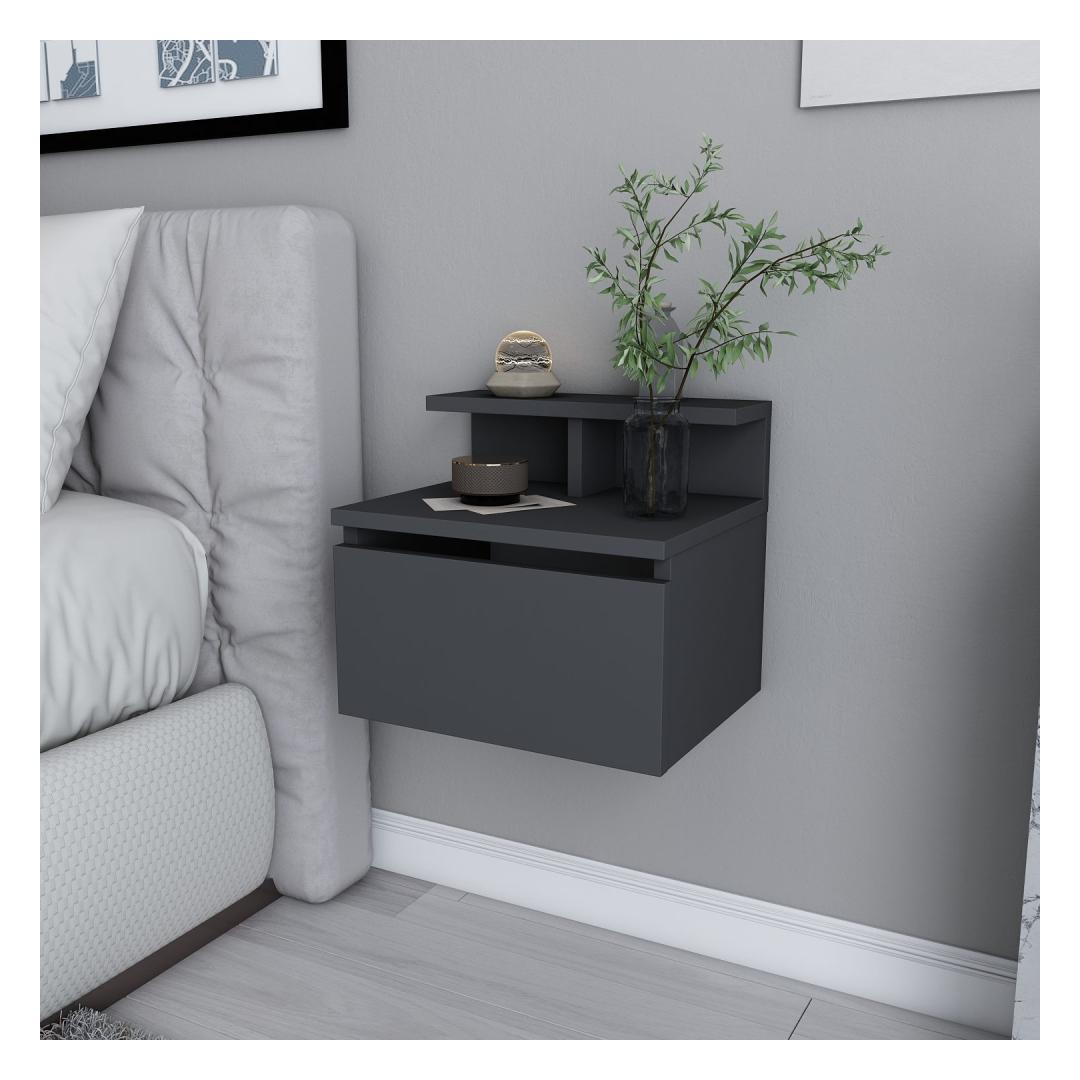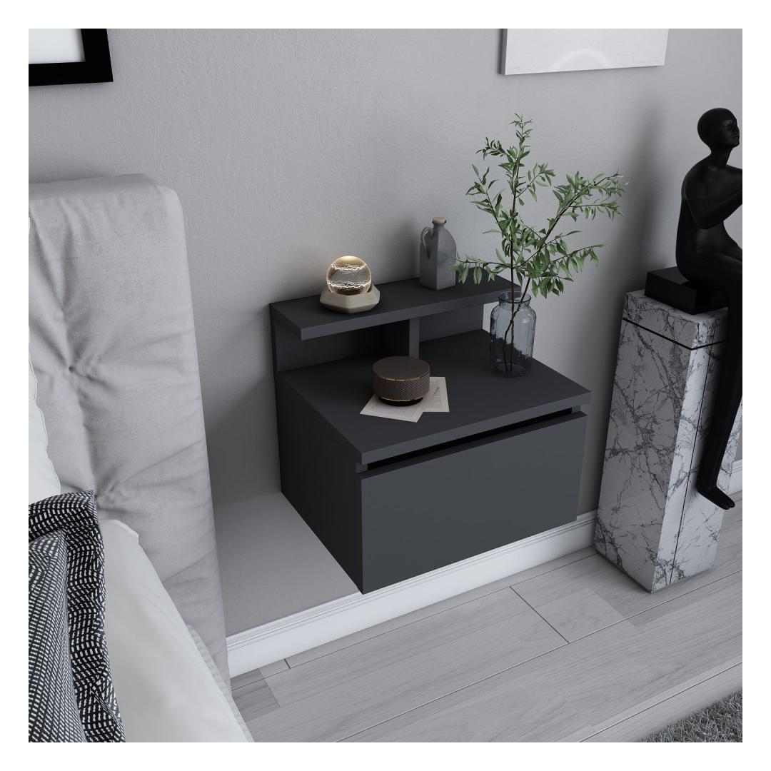 Made from 100% melamine coated particle board, this Nightstand is built to last. The 18mm thickness ensures sturdiness and stability, while the anthracite color adds a touch of contemporary charm. Its compact dimensions of 39.8cm in width, 31.9cm in depth, and 35cm in height make it the perfect fit for any bedroom size.