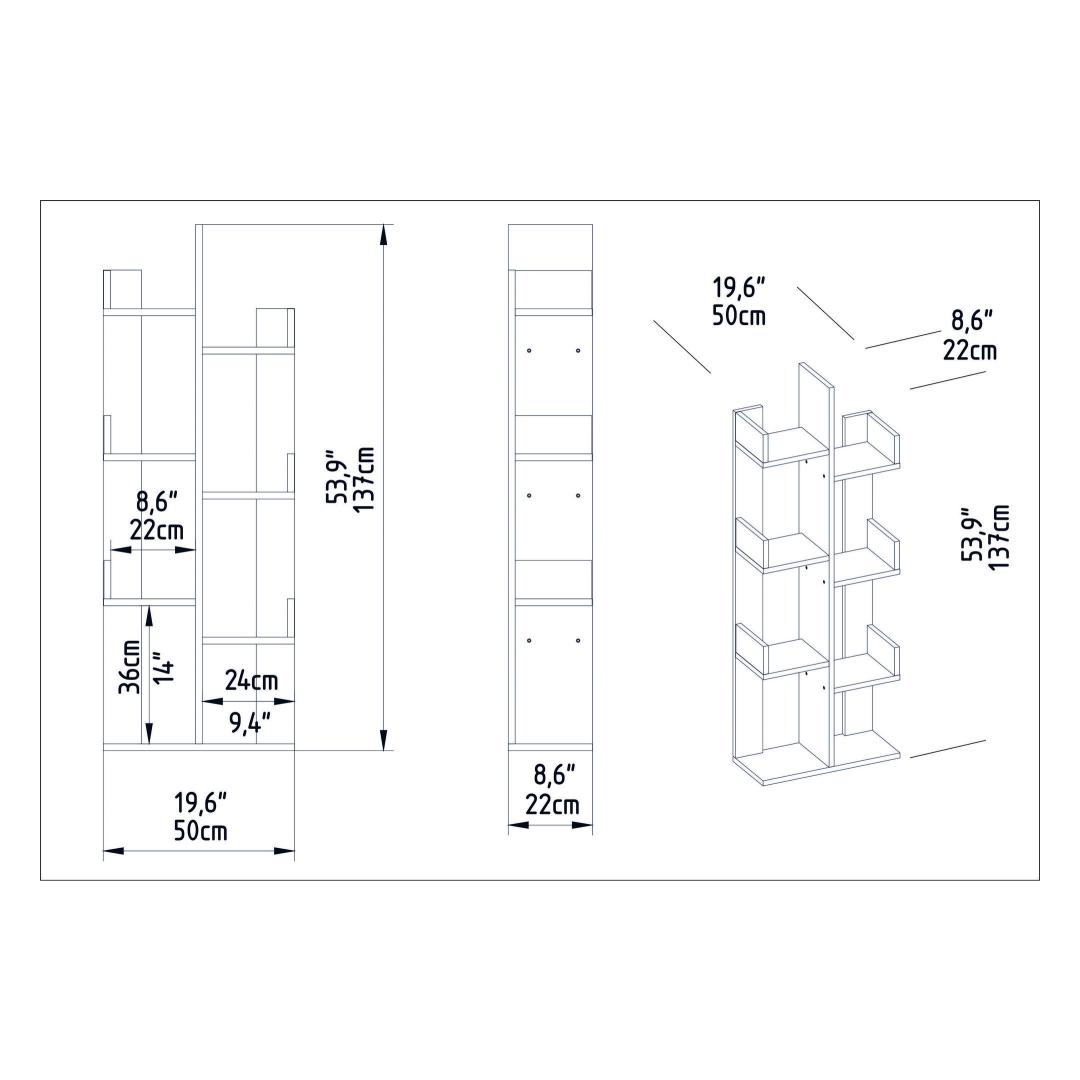 Measuring 50cm in width, 22cm in depth, and 173cm in height, this bookshelf offers ample storage space without taking up too much room. Its sleek design allows it to seamlessly blend into any interior style, making it a versatile addition to your home or office.