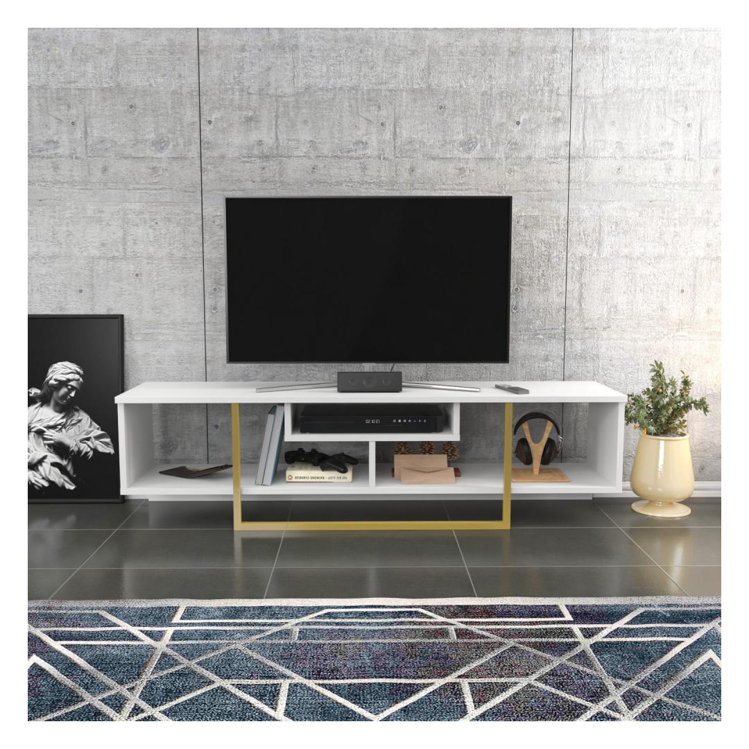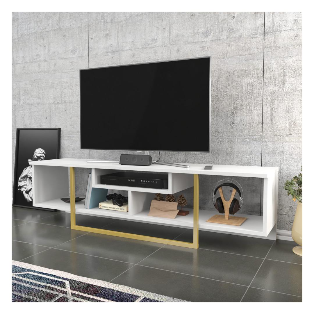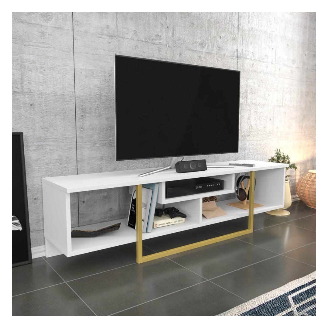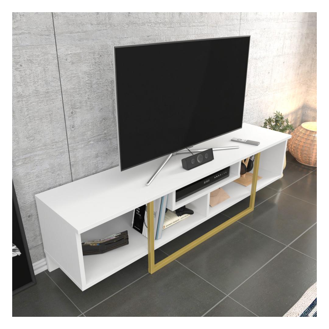 The combination of white and gold colors gives this TV stand a truly glamorous appeal. The sleek white finish adds a modern touch, while the gold accents exude sophistication and opulence. It's a perfect blend of contemporary and classic design elements.