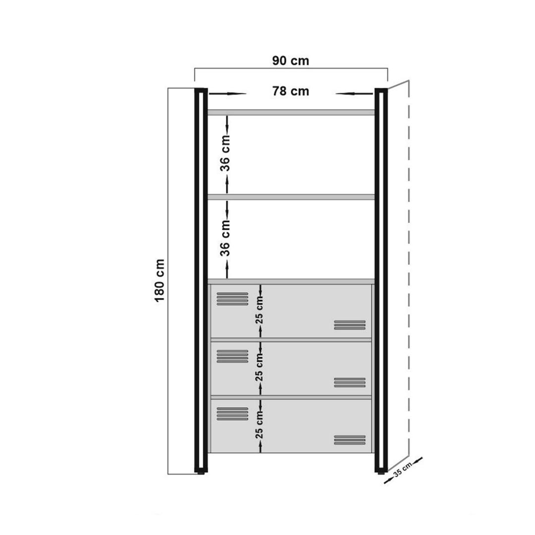 Bookshelf Size: Width: 90 cm Height: 35 cm Depth: 180 cm