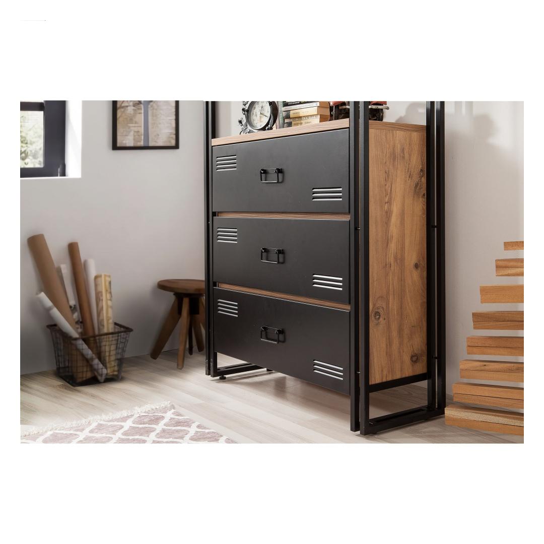 Transform your study room into a stylish and functional space with our Study Room Furniture Set. Crafted with 100% melamine coated particle board, this furniture set is built to last and withstand daily use. The 18 mm thickness ensures sturdiness and durability, while the metal frame adds a modern touch to the overall design.