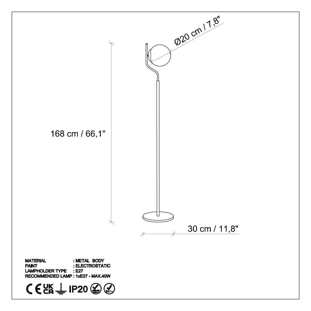 With a socket type of 1 x E 27 Max 40 W, this floor lamp is compatible with a variety of bulbs, allowing you to choose the perfect brightness for your space. The 250 cm cable length gives you flexibility in where you place the lamp, while the sturdy base plate ensures stability.