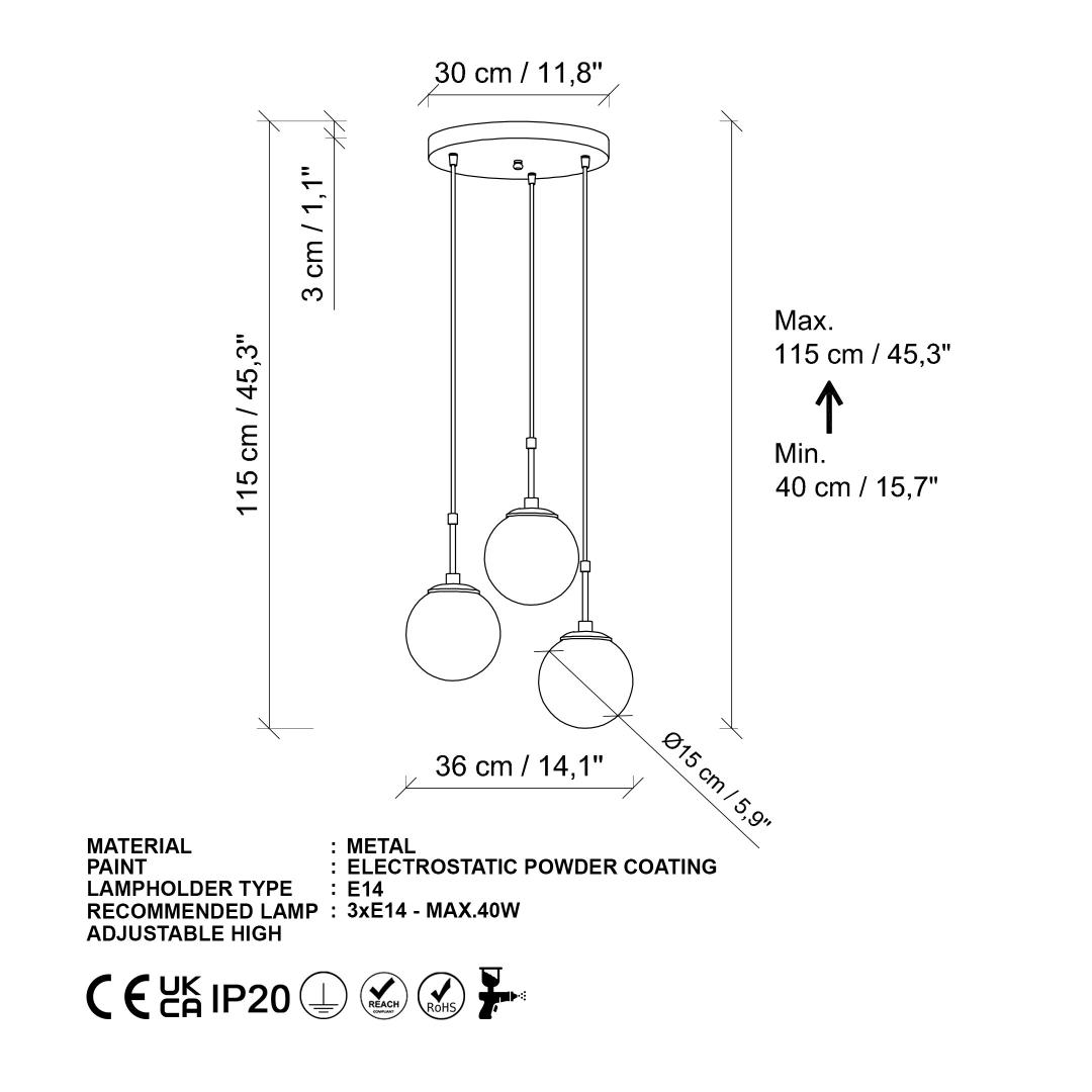 • Socket Type: 3 x E14 Max 40 W