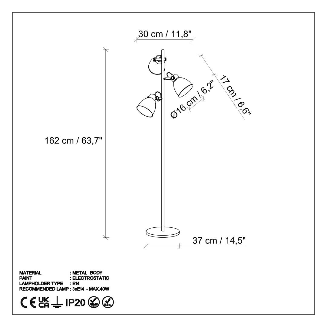 With a convenient on/off switch button on the cable, this floor lamp is easy to operate. The 250 cm cable length gives you flexibility in placing the lamp wherever you need it. The 3 x E14 socket type allows you to use bulbs up to 40W, giving you plenty of light to brighten up your room.
