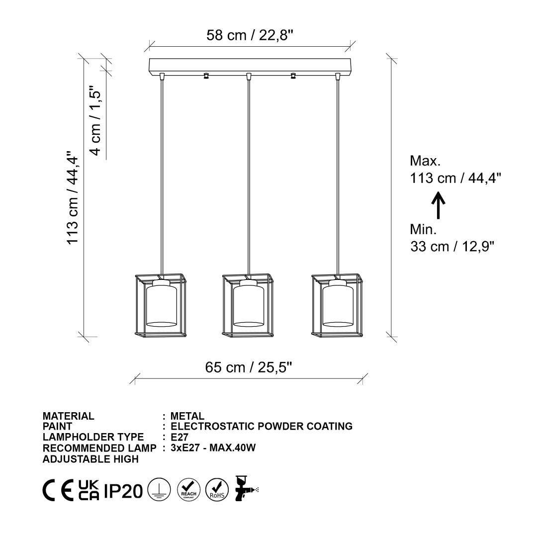 With three E27 sockets, you can easily brighten up your room with your choice of bulbs (not included), up to 40W each. The IP20 rating ensures safety and peace of mind, while the 220-240V compatibility makes it easy to install and use in any home.