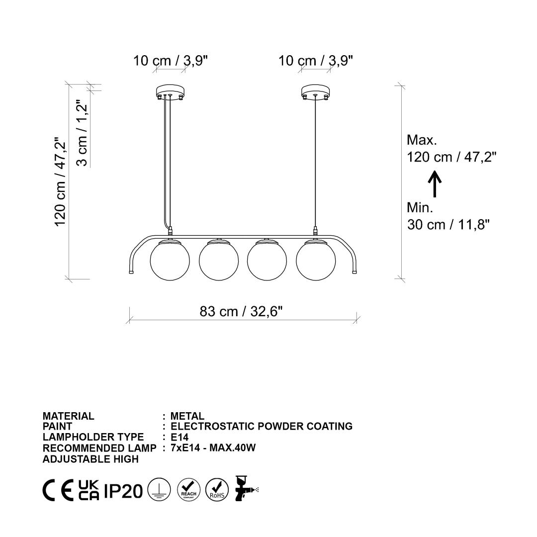With a total height range of 30-120 cm and an adjustable cable length of 90 cm, you can customize the height of this chandelier to suit your space and design preferences. Whether you prefer a dramatic, eye-catching look or a more subtle and understated style, this chandelier can be adjusted to fit your needs.