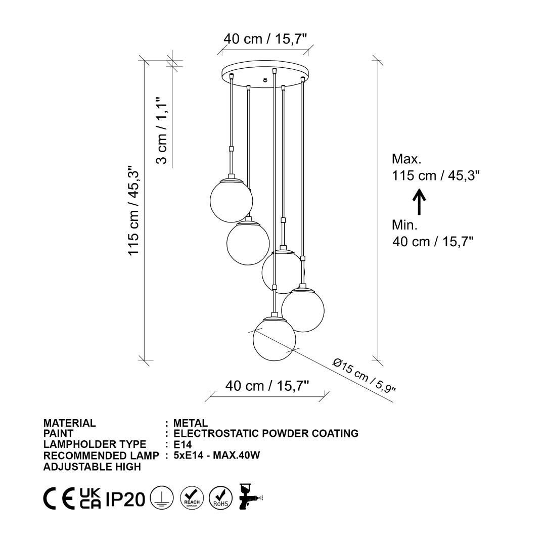 • Socket Type: 5 x E14 Max 40 W