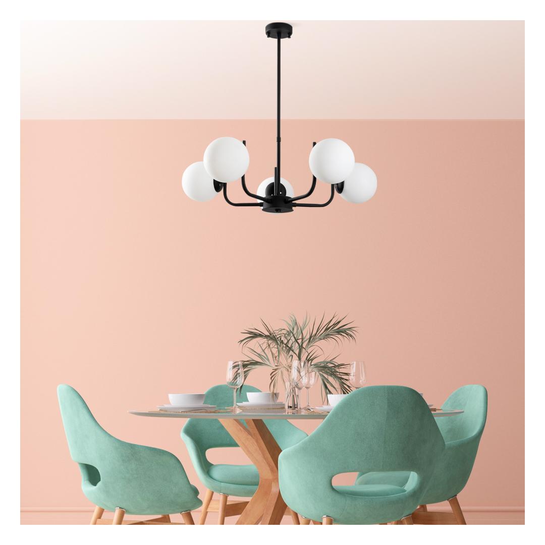 This chandelier requires 5 x E14 bulbs with a maximum of 40W each (bulbs not included), offering ample lighting for any occasion. The chandelier is designed for use with 220-240V and has an IP code of IP20, making it suitable for indoor use only. The sleek black color of the chandelier adds a modern touch to any room, creating a warm and inviting atmosphere.