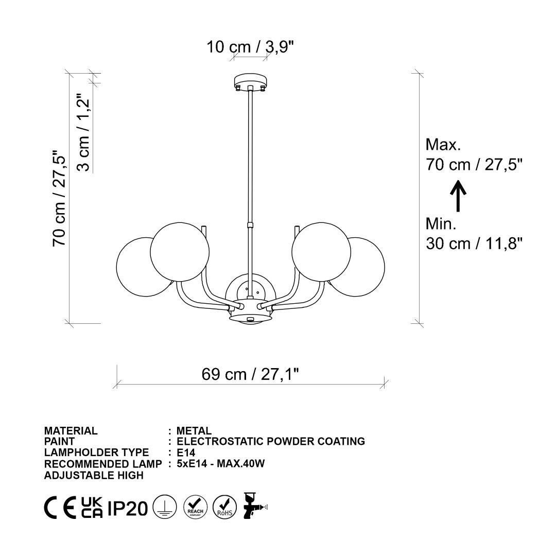 • Socket Type: 5 x E14 Max 40W
