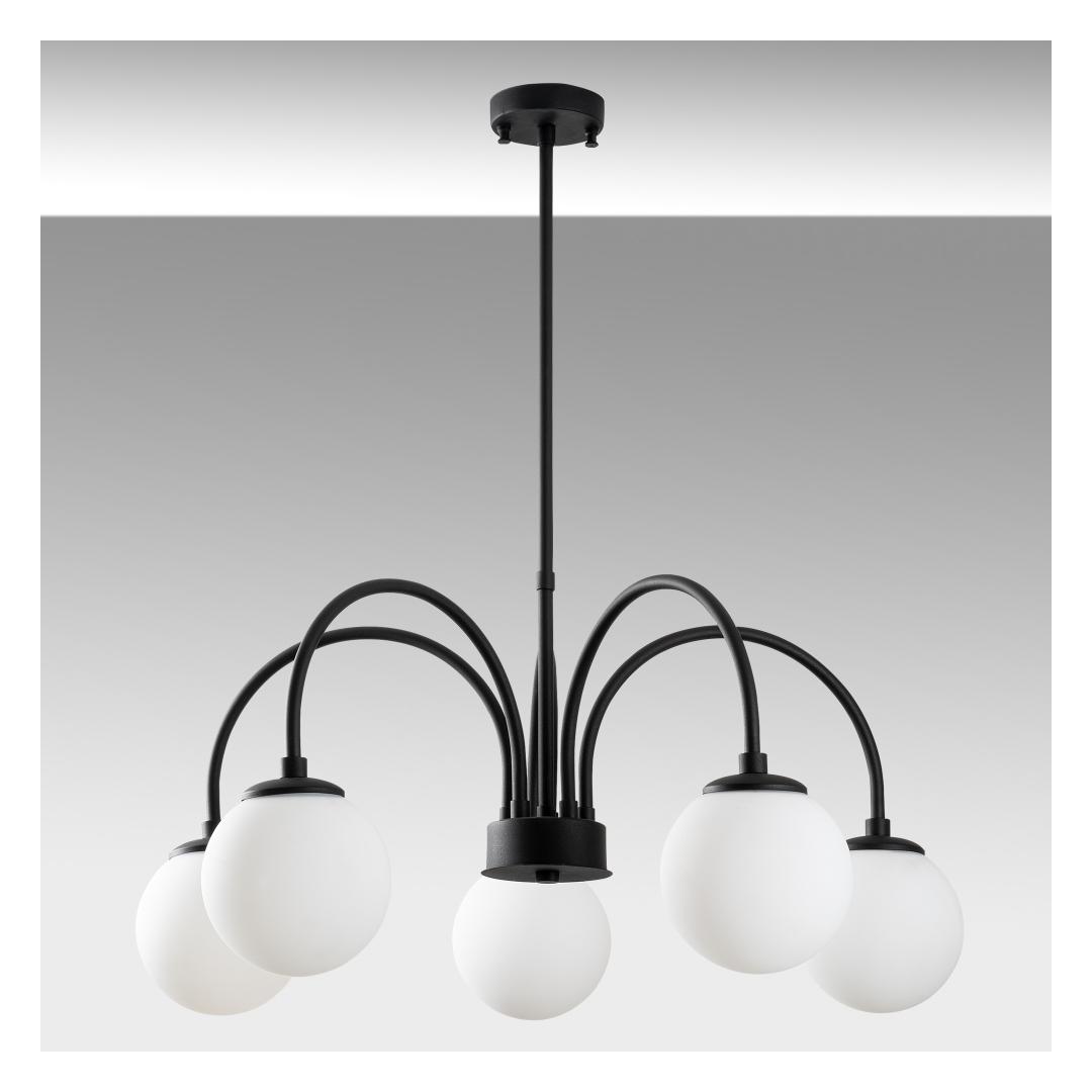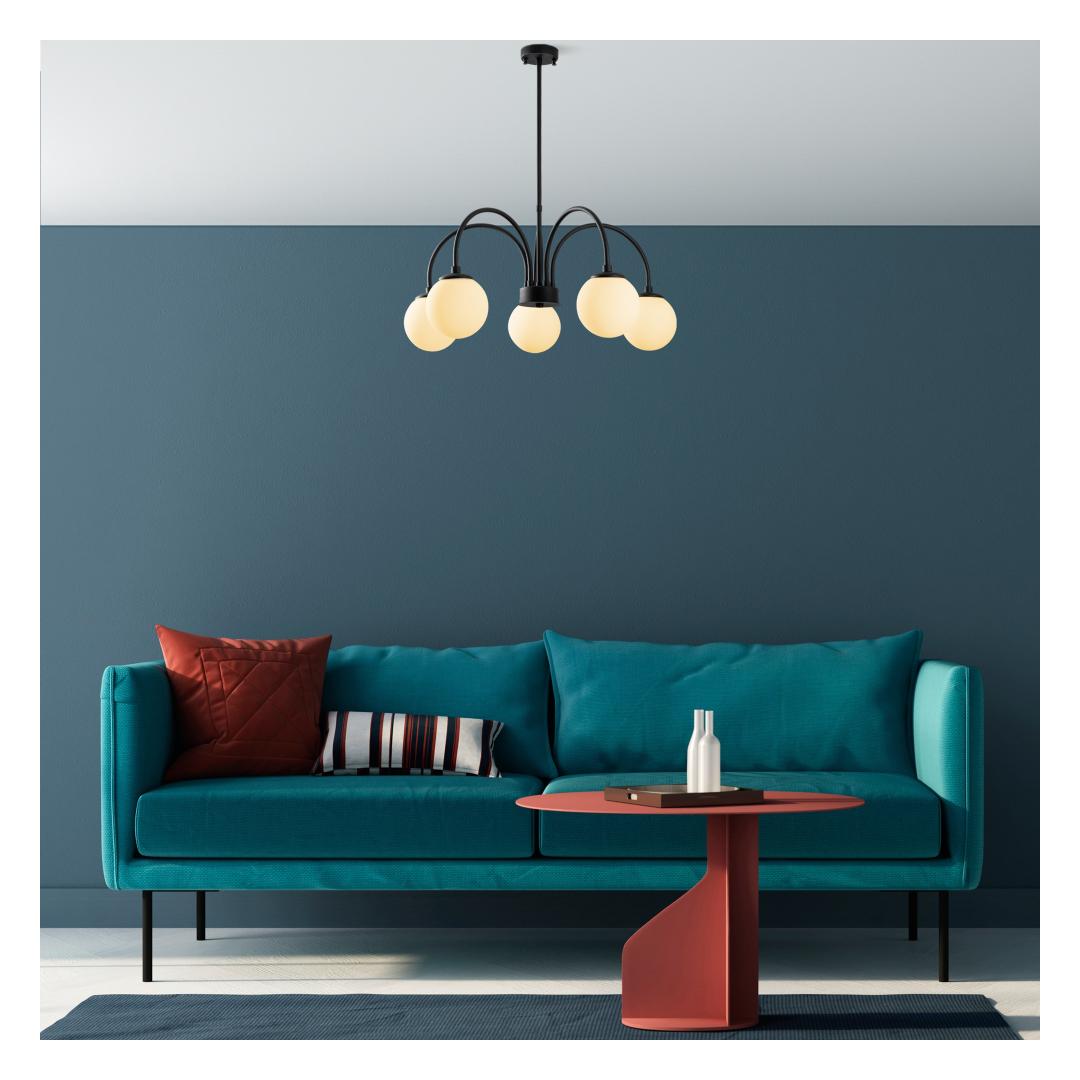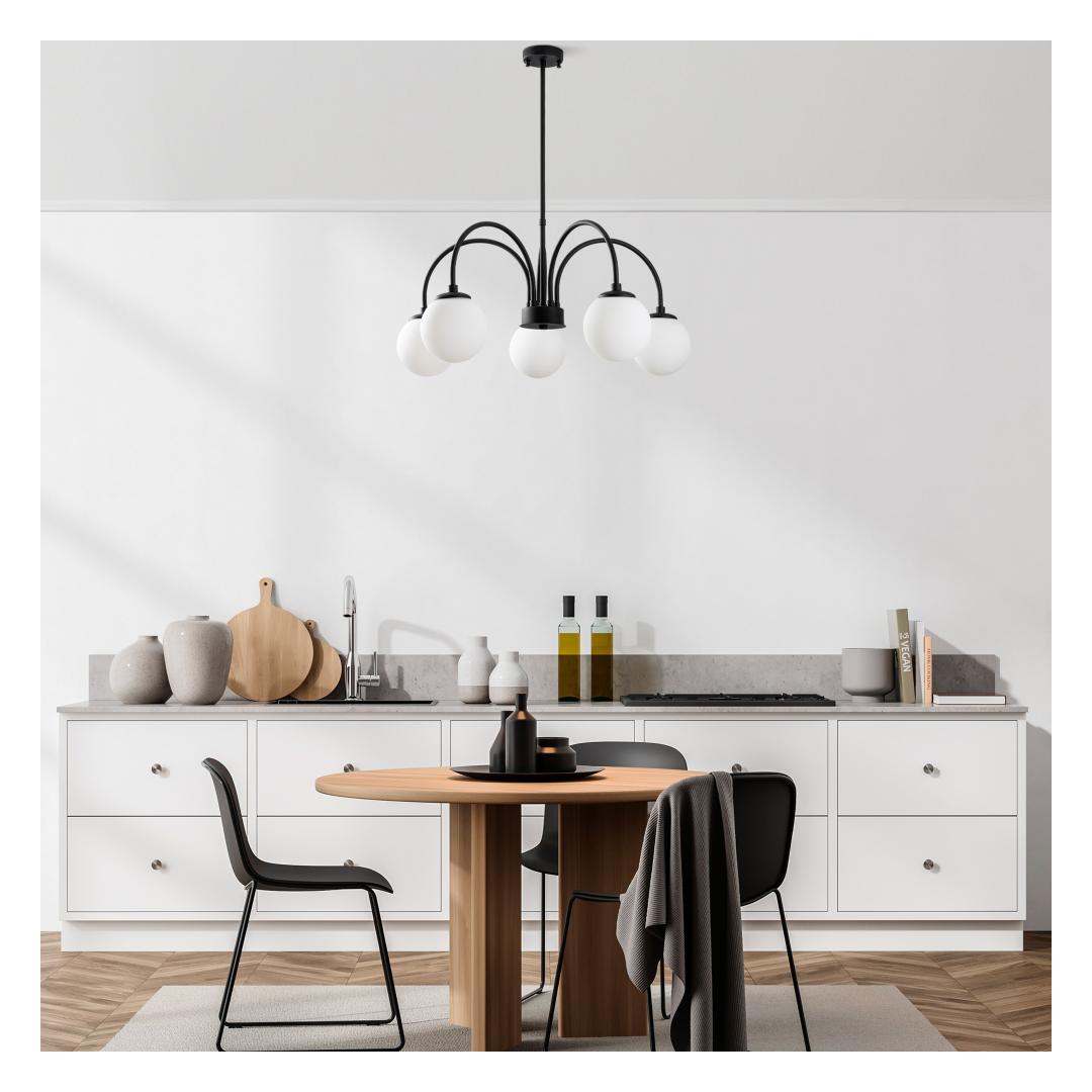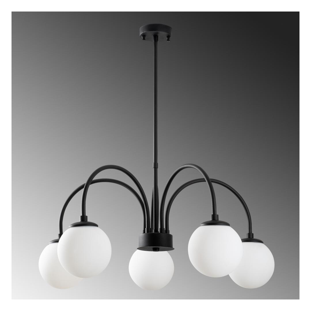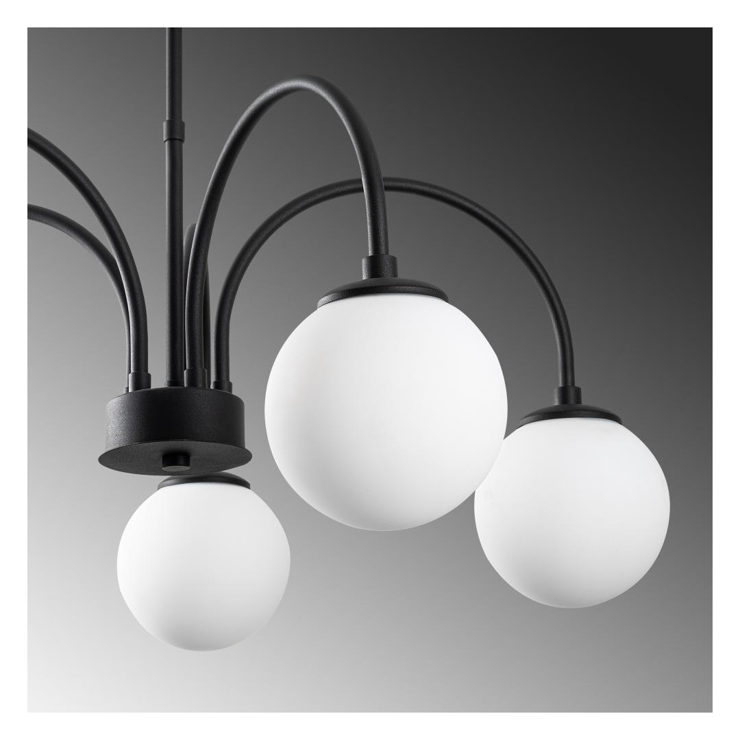 The chandelier features a sleek metal body with a glass cap, giving it a modern and luxurious look that will enhance the decor of your home. The black color adds a touch of drama and style, making it a statement piece in any room.