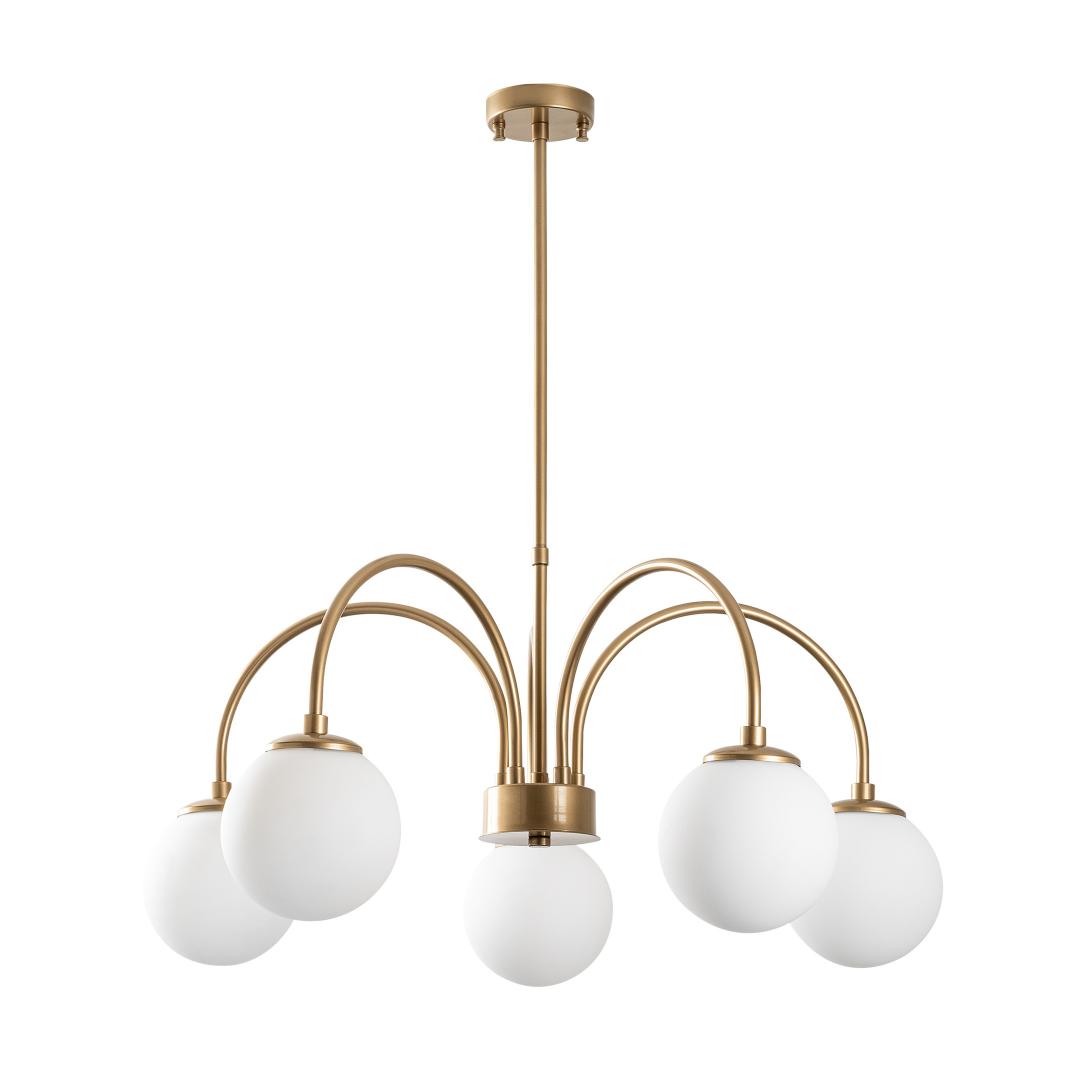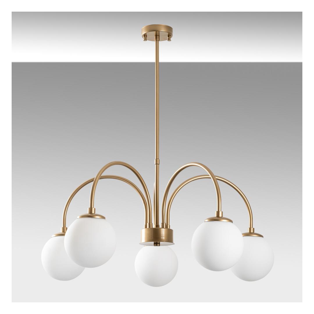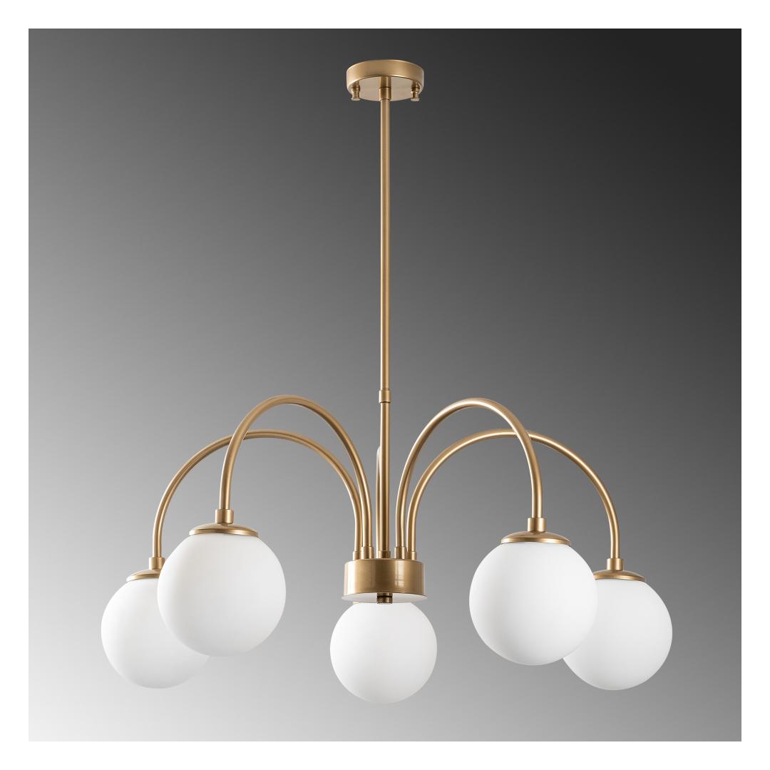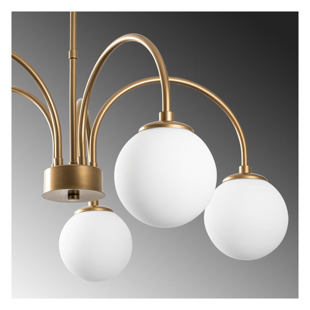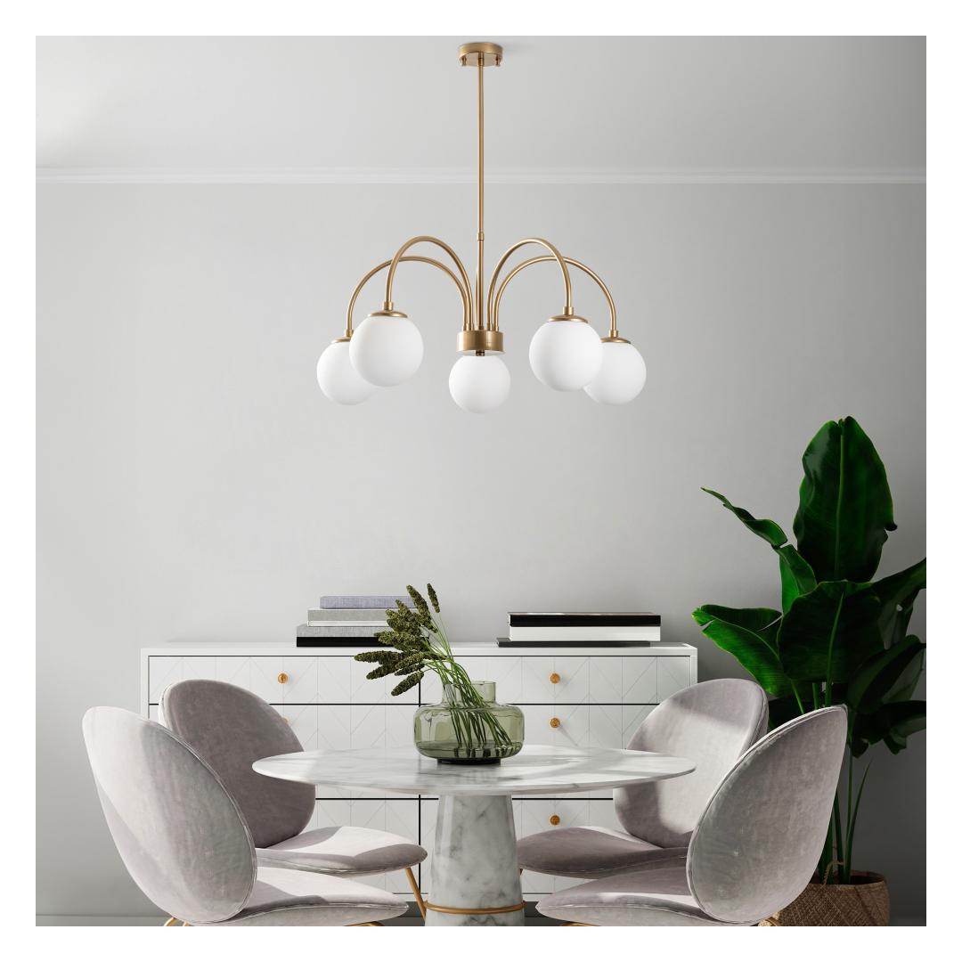 Transform your living space with our stunning Gold Chandelier. This exquisite piece will add a touch of elegance and sophistication to any room, creating a warm and inviting atmosphere that you and your guests will love. The intricate metal body and glass cap combine to create a truly breathtaking design that will be the focal point of your home.