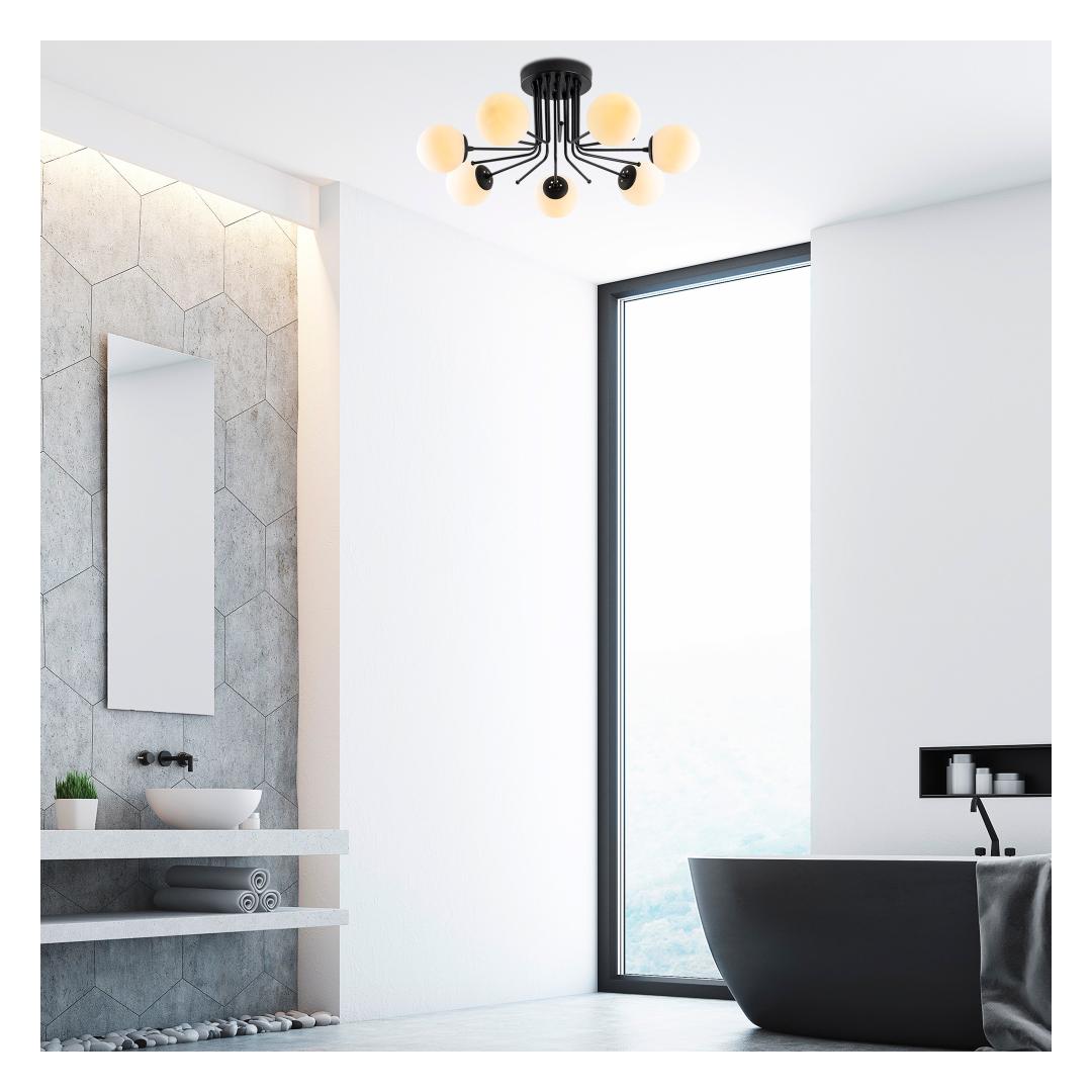 Crafted with a metal body, this chandelier exudes durability and strength. The sleek black finish adds a modern and edgy touch, making it the perfect statement piece for your home or office. The glass cap beautifully diffuses the light, creating a warm and inviting ambiance that will captivate your guests.