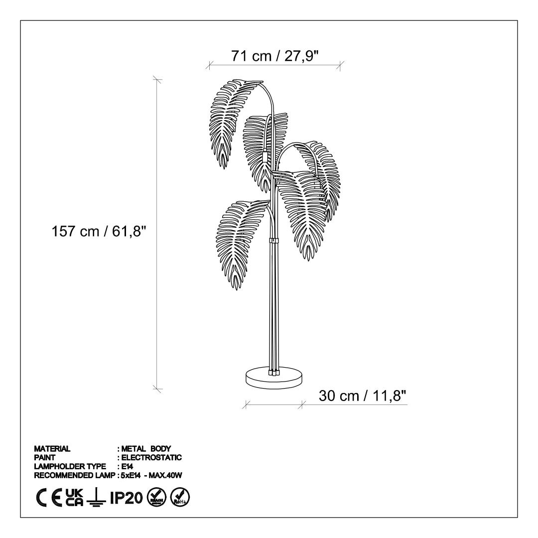 Illuminate your home with elegance and style with our stunning floor lamp. The metal body of this lamp exudes sophistication and luxury, making it the perfect addition to any room in your home. Standing at 157 cm tall, this lamp will command attention and create a warm and inviting atmosphere in your space.