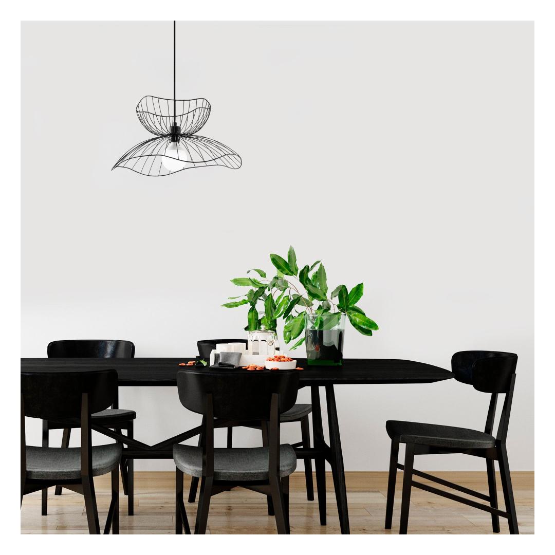 The chandelier features a captivating black color that effortlessly blends with any interior decor, adding a touch of sophistication and elegance to your space. The sleek and minimalistic design of this chandelier makes it a versatile choice for both residential and commercial settings.