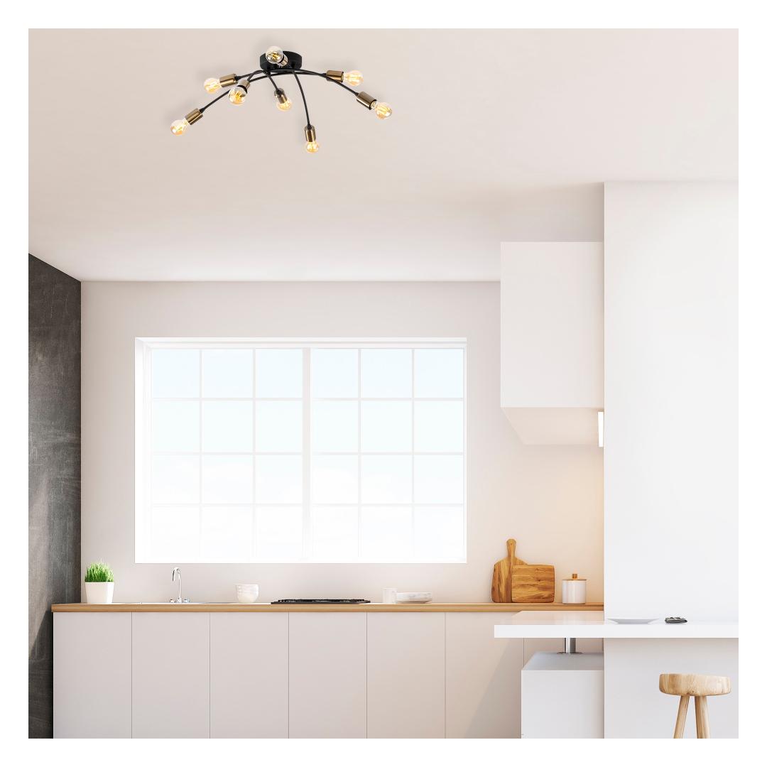 With its generous size of 79 x 79 cm and a height of 26 cm, this chandelier becomes the focal point of any room. Its captivating design features eight sockets, allowing you to illuminate your space with a warm and inviting glow.
