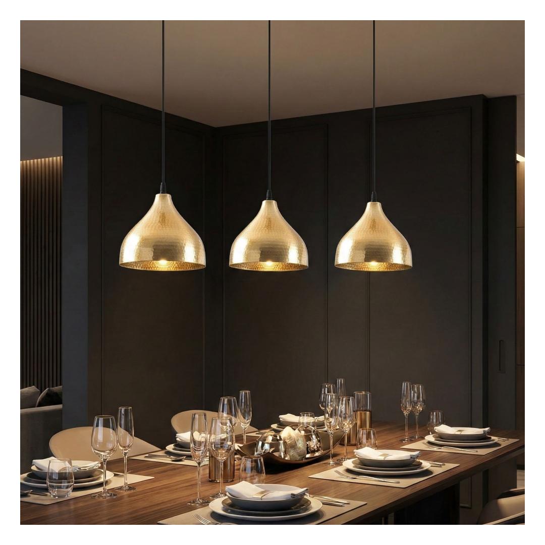 Crafted with a sturdy metal body, this chandelier is built to last. Its sleek and polished gold finish exudes elegance and luxury, making it a standout feature in any room. The attention to detail in the design ensures that this chandelier not only illuminates your space but also becomes a stunning centerpiece that enhances the overall aesthetic.