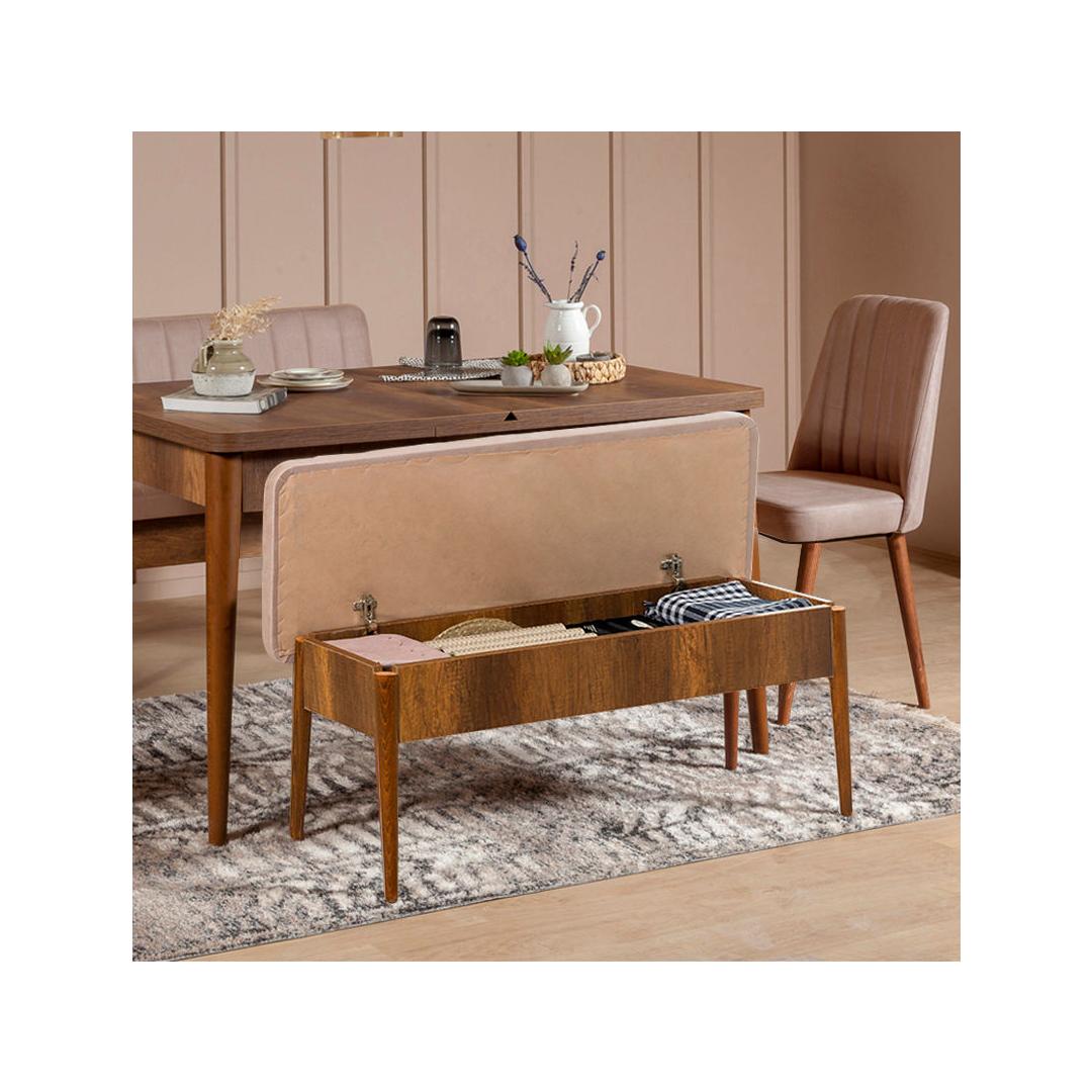 The Bank boasts a sleek and stylish design, combining modern and rustic elements seamlessly. The hornbeam legs add a touch of sophistication, while the walnut and stone colors create a warm and inviting atmosphere.
