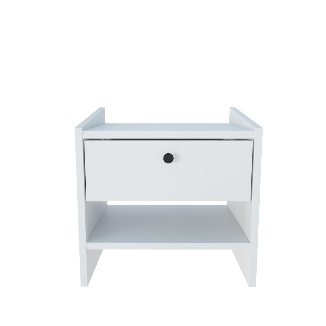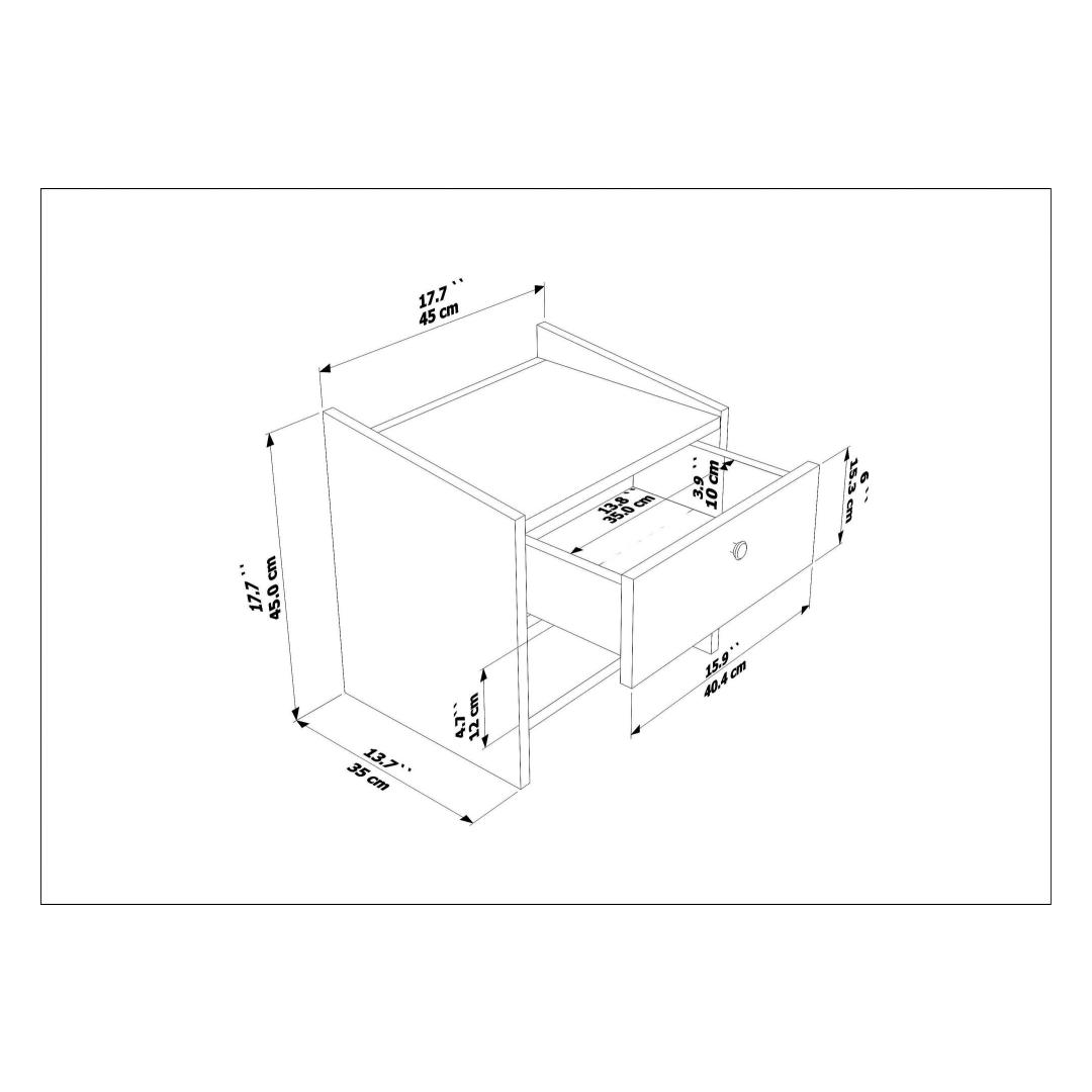 Say goodbye to cluttered bedside tables and hello to organized elegance with our nightstand. The white color adds a fresh and modern touch to any bedroom decor, while the 18mm thickness of the particle board ensures sturdiness and longevity. The compact size of 45cm in width, 45cm in height, and 35cm in depth makes it perfect for smaller spaces without compromising on storage capacity.