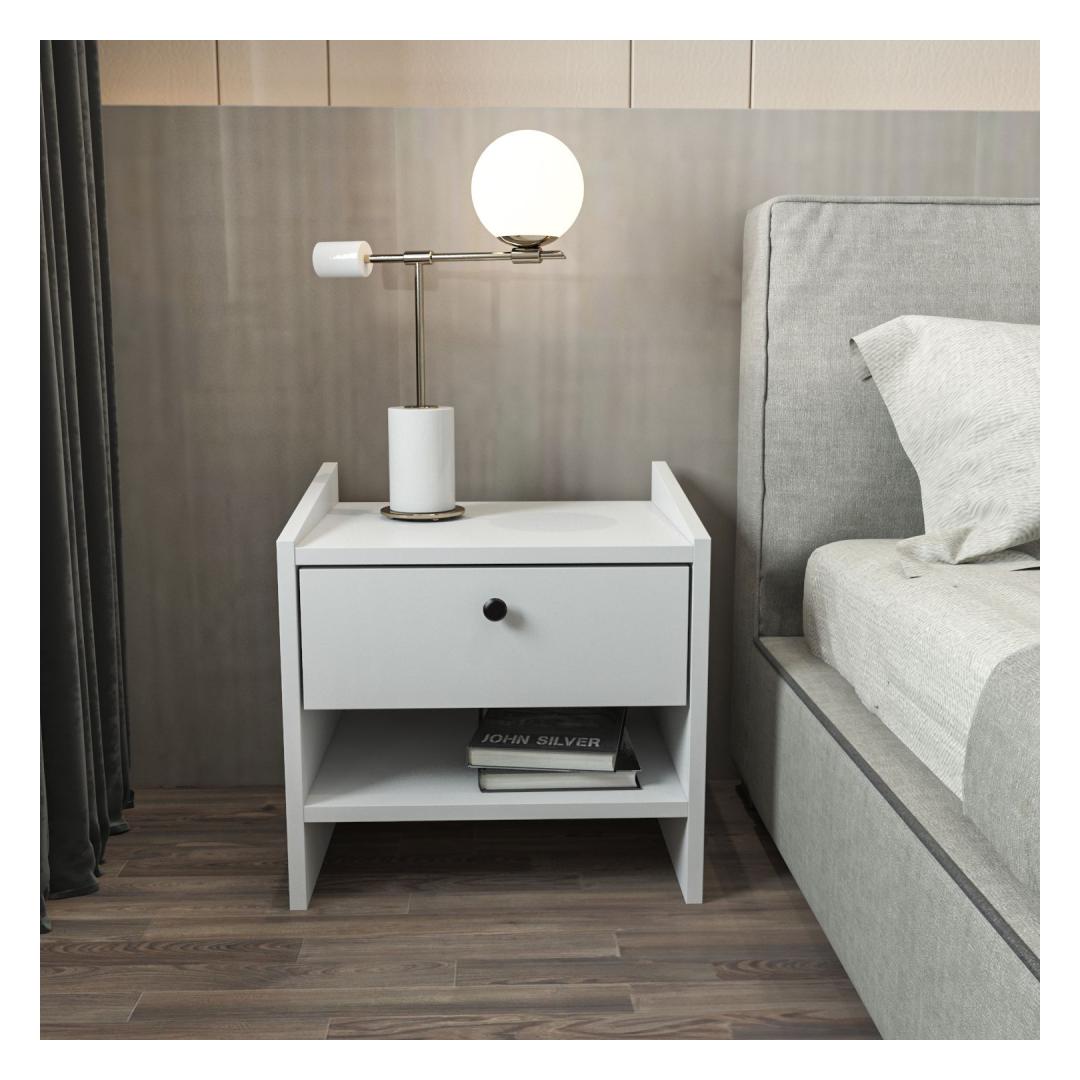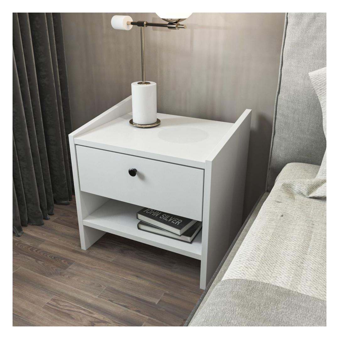 Transform your bedroom into a cozy sanctuary with our elegant and functional nightstand. Crafted from 100% melamine coated particle board, this nightstand is not only durable but also stylish. Its sleek design and clean lines will instantly elevate the look of your bedroom, adding a touch of sophistication to your space.