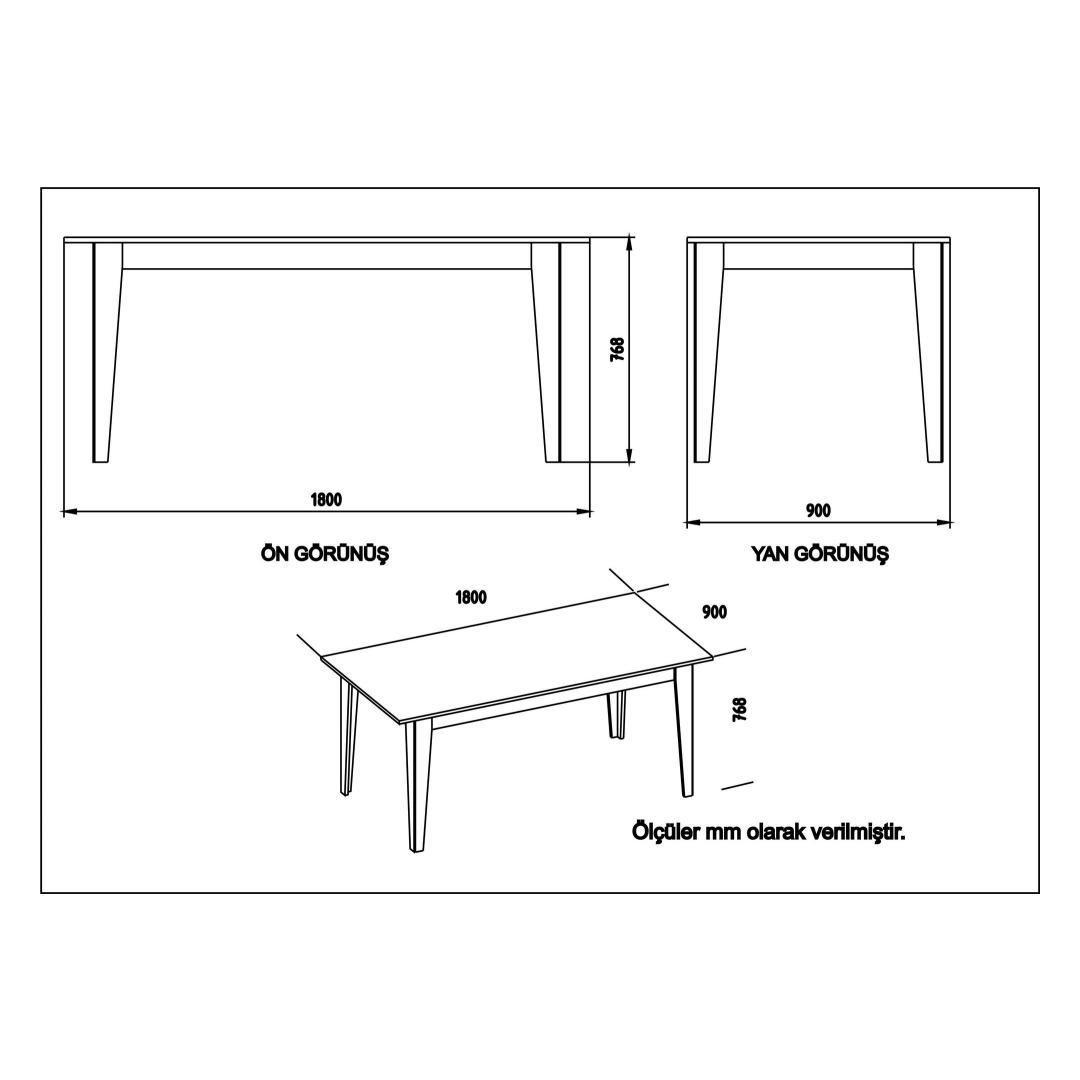 • Dining Table Size: Width: 180 cm, Height: 76.8 cm, Depth: 90 cm