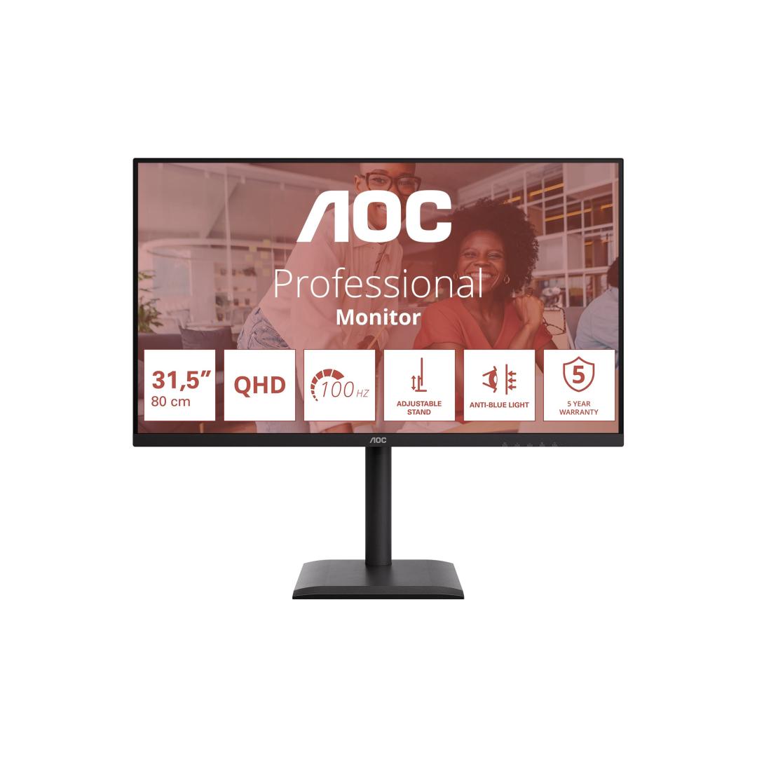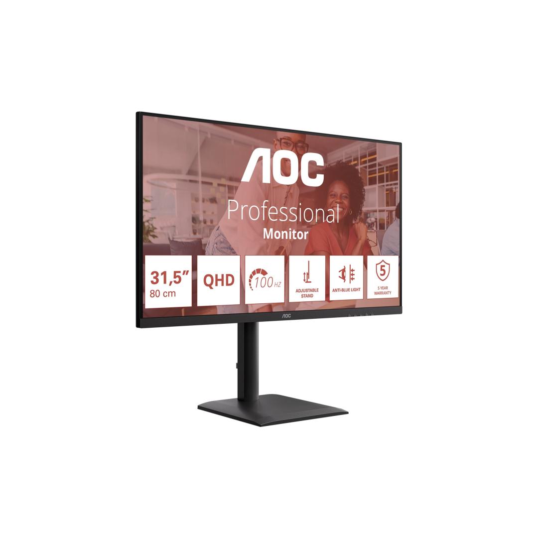 AOC 31.5inch 2560x1440 100Hz IPS Flat H/A 180 MM Adaptive Sync TUV EyeComfort Hardware USB HUB SPEAKERS Anti Blue light DP HDMI